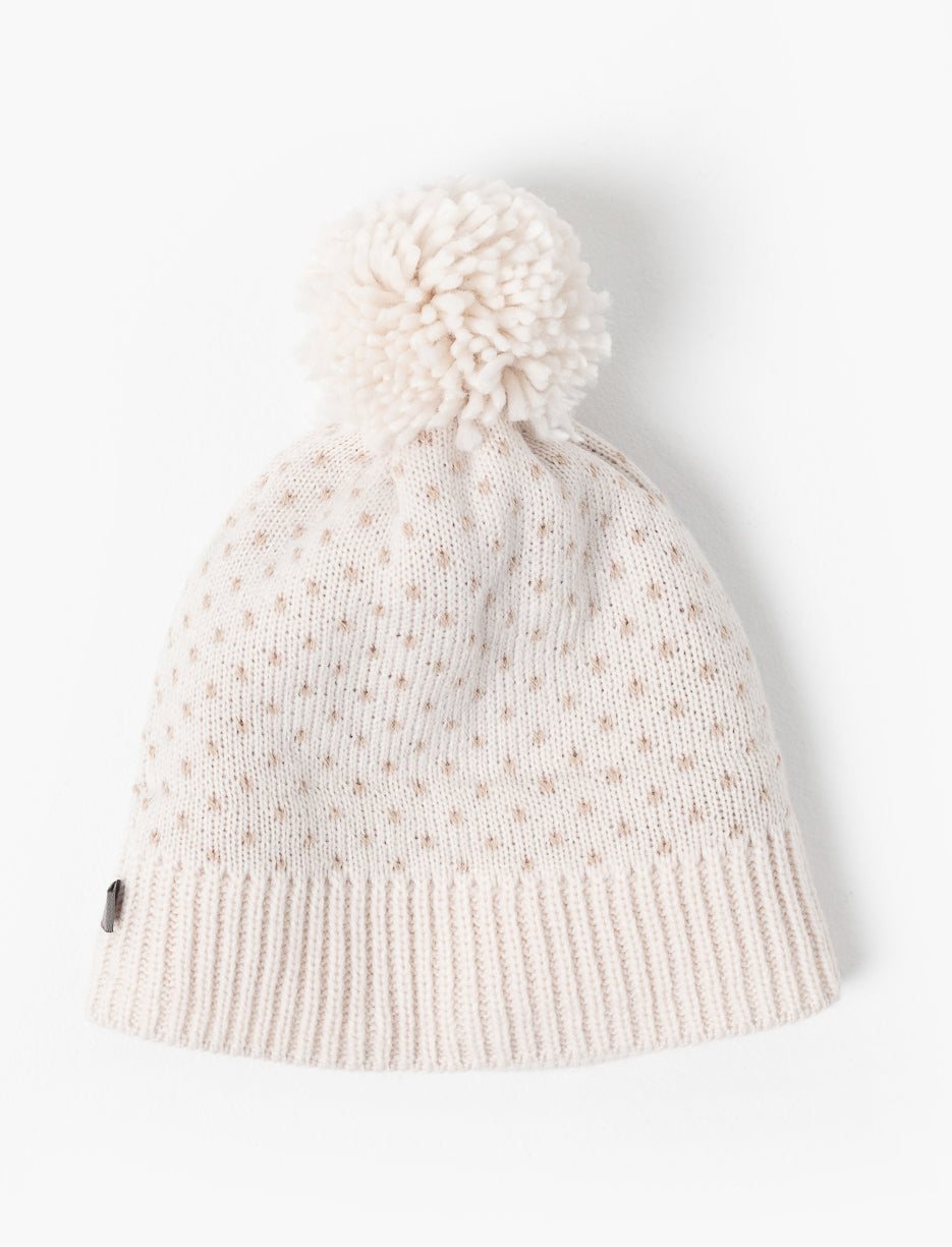 Une tuque adorable qui réchauffe autant qu’elle fait sourire, avec son pompon ludique et ses petits cœurs charmants.