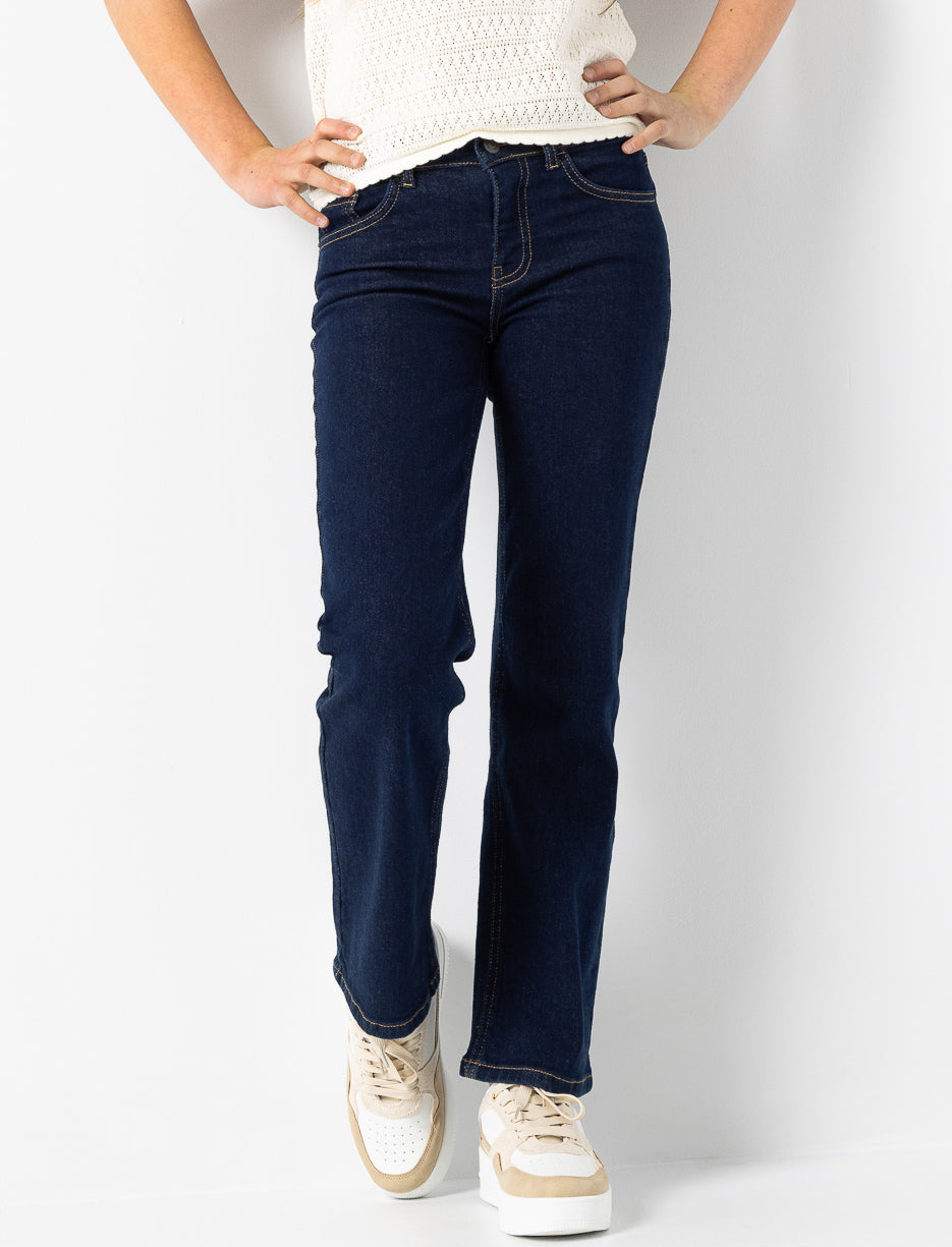 Ce jean à jambe semi-évasée est confortable et stylé pour suivre le rythme de ses journées bien remplies. Un essentiel revisité avec une touche tendance.