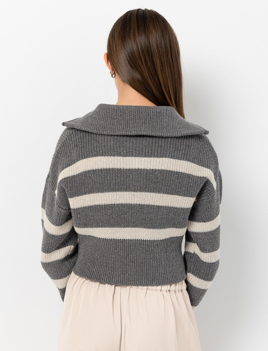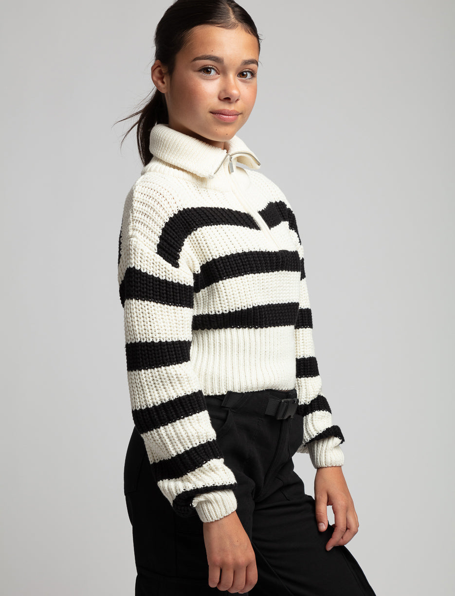 Avec ses rayures et sa coupe tendance, c'est le chandail parfait pour accueillir les saisons plus fraîches avec style et chaleur.