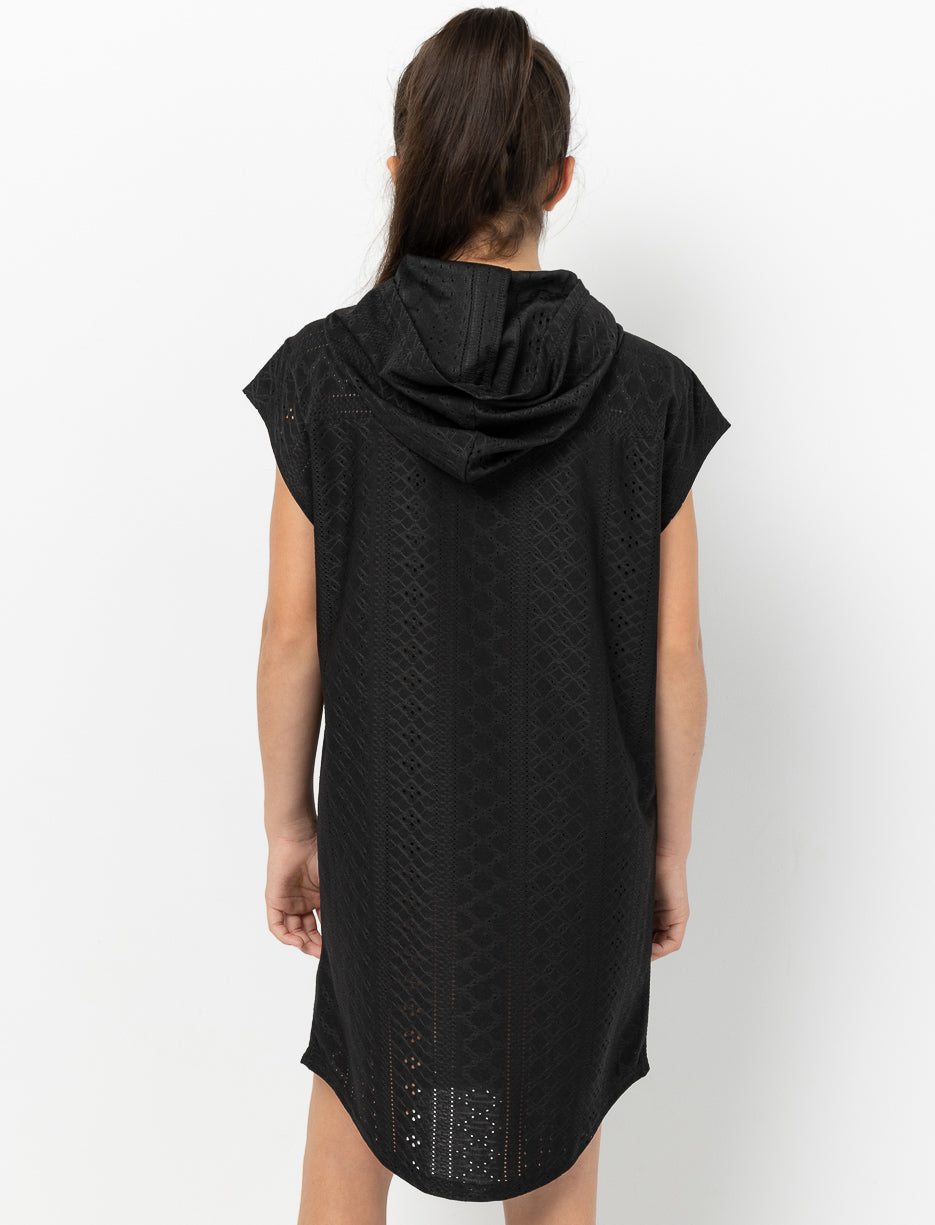 Enveloppez votre grande dans cette robe par-dessus de maillot à capuchon, parfaite pour les pauses soleil. Légère, ajourée et facile à enfiler, elle devient vite son essentiel des journées plage.