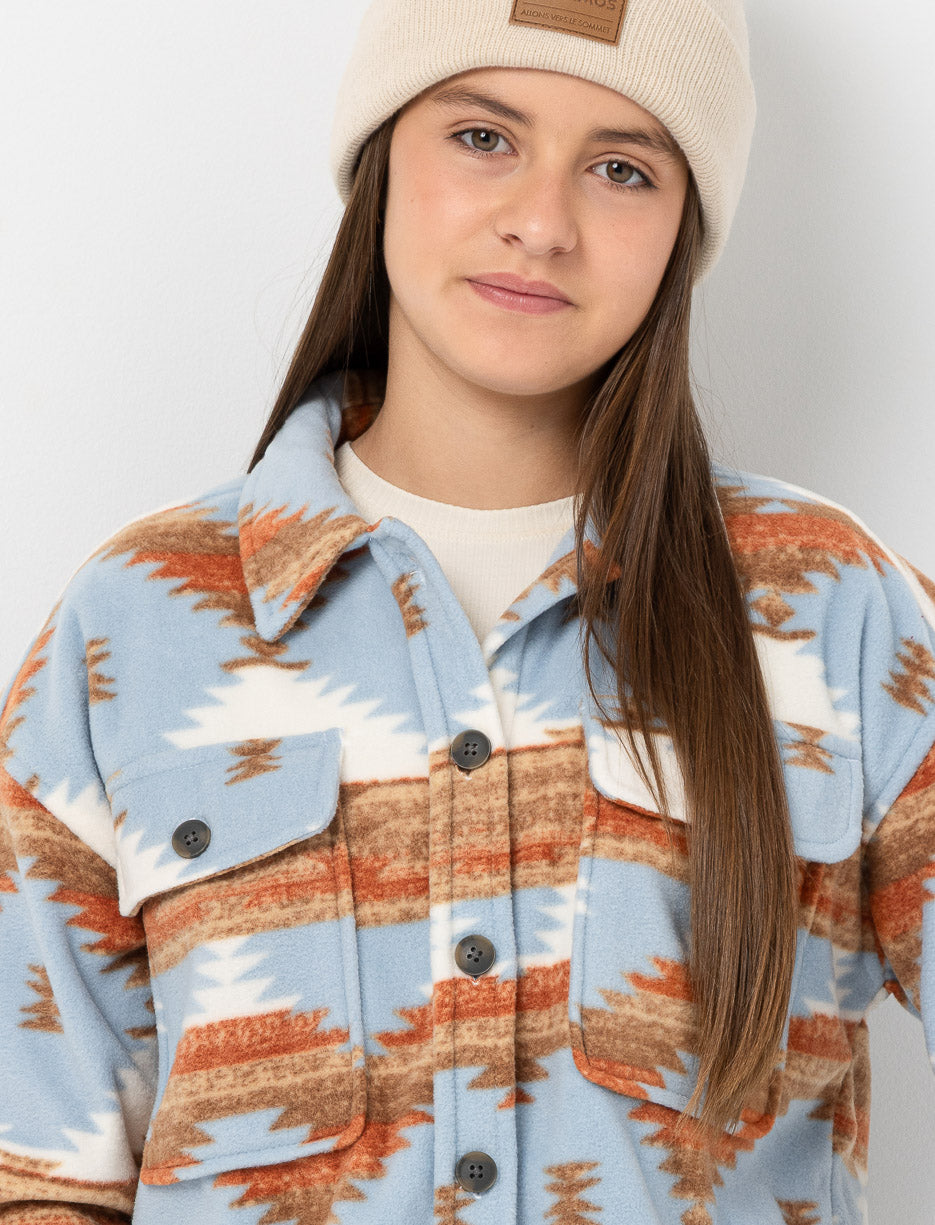 Offrez à votre ado une veste-chemise au motif aztèque unique. Parfaite pour compléter ses tenues décontractées, elle combine confort et style pour un look tendance au quotidien.