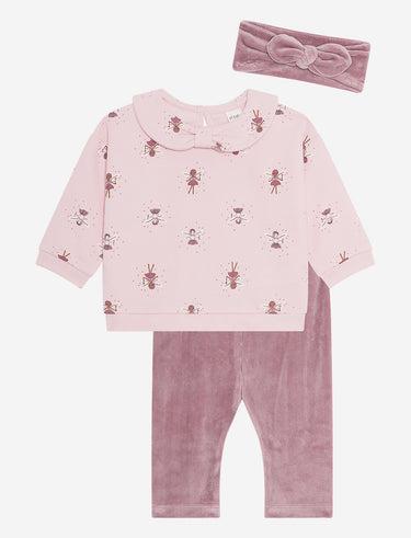 Un charmant ensemble 2 pièces composé d’un haut à col Claudine orné de motifs délicats et d’un legging assorti, pensé pour habiller votre petite avec confort et style.
