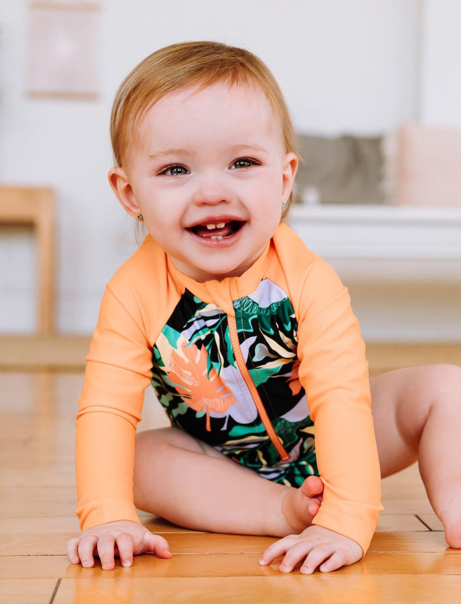 Pensé pour les journées au soleil, ce maillot 1 pièce protège délicatement la peau de votre bébé tout en assurant une grande liberté de mouvement. Sa coupe pratique et ses manches longues le rendent idéal pour jouer et barboter confortablement.