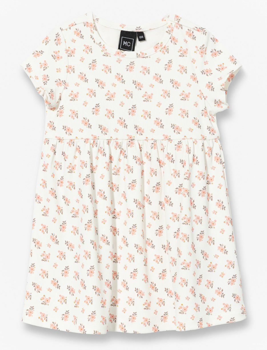 Robe charmante pour bébé fille avec manches courtes fluides et col rond. Motif fleuri élégant sur l'avant et l'arrière. Taille ceintrée avec fronce pour une silhouette adorable, ouverture au dos pour un habillage facile. Style incontournable pour sa garde-robe.