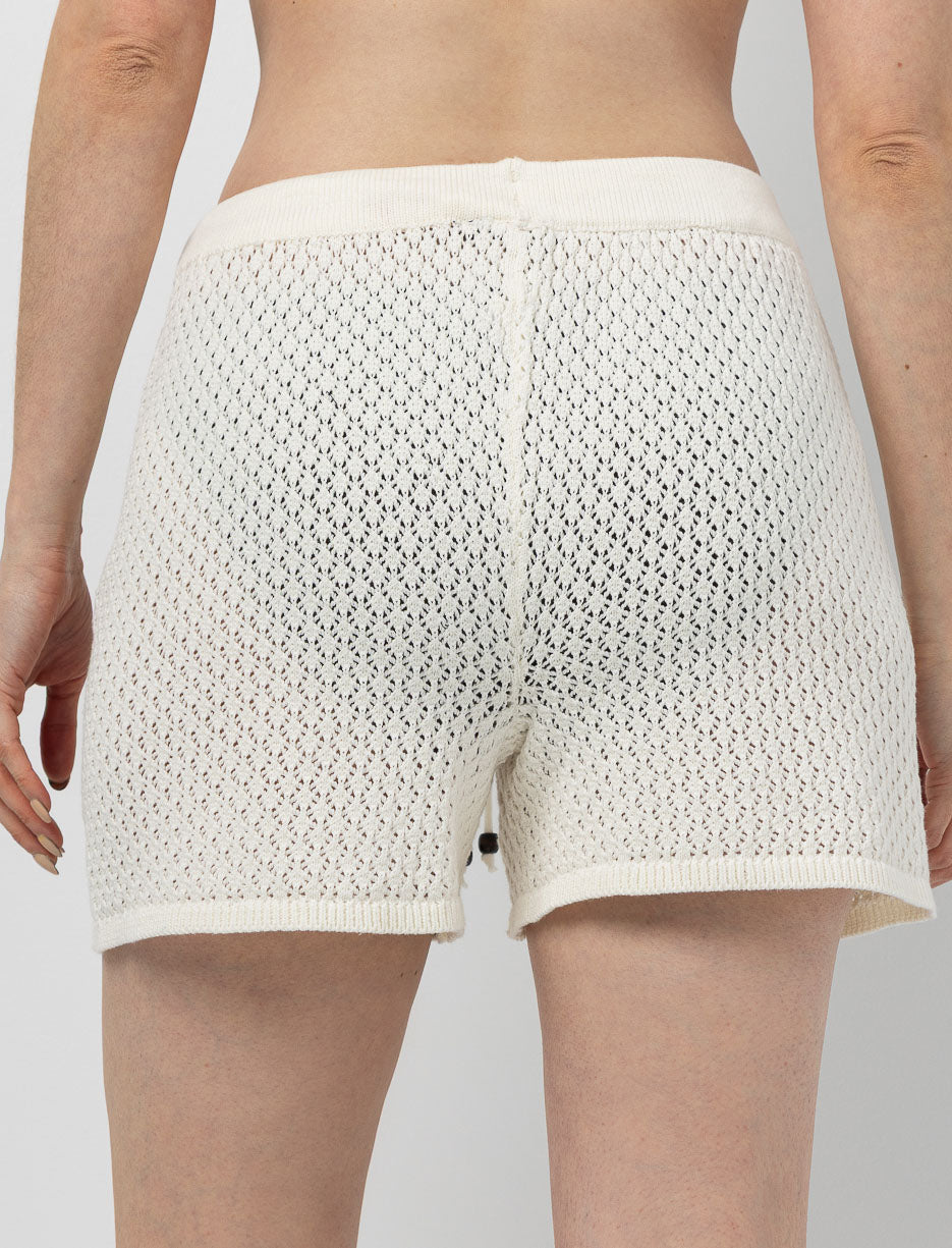 Short couvre-maillot élégant doté d'une taille élastique ajustable et de cordons délicatement ornés de perles. Sa longueur de 4 pouces et son détail crochet raffiné en font un incontournable pour les sorties à la plage. Polyvalent et chic, il complète parfaitement votre maillot de bain avec une touche de sophistication.