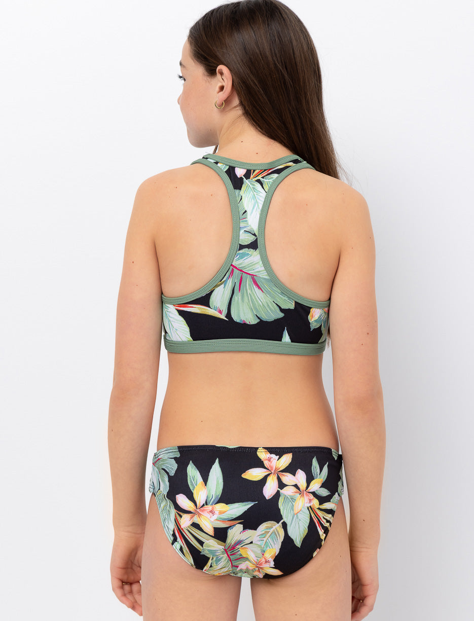 Maillot 2 pièces imprimé avec haut sport à dos nageur et bas coordonné. Son tissu côtelé UV50 offre confort et protection au soleil, parfait pour accompagner votre enfant dans toutes leurs journées plage ou piscine.