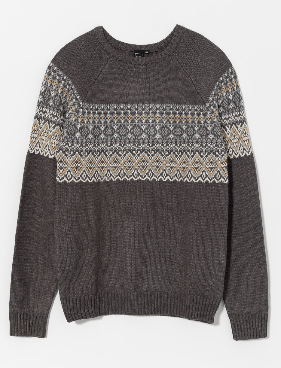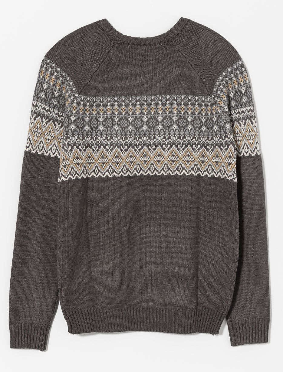 Chandail en tricot à motif qui allie chaleur et style, parfait pour affronter la saison froide avec confort et élégance.