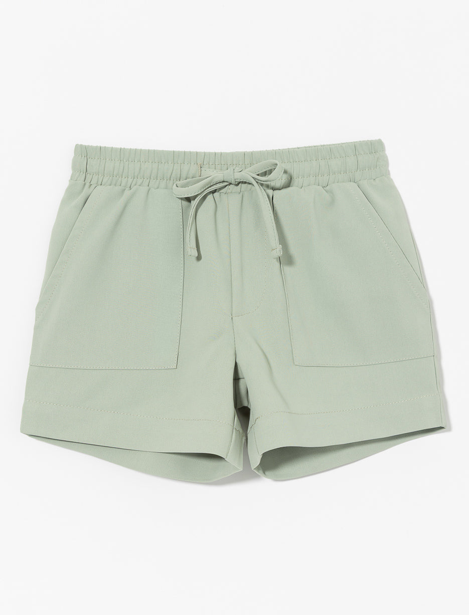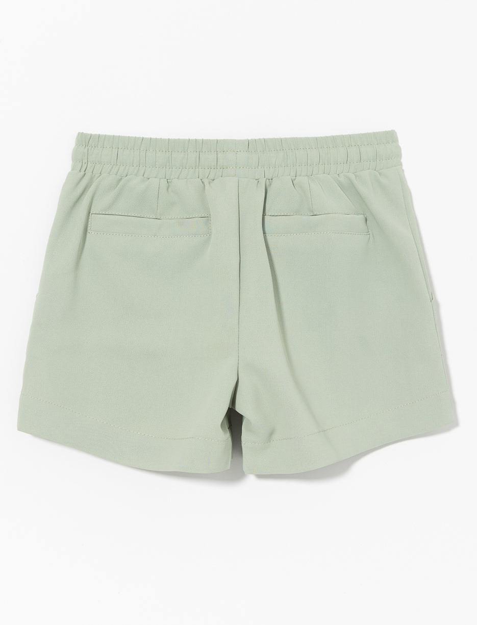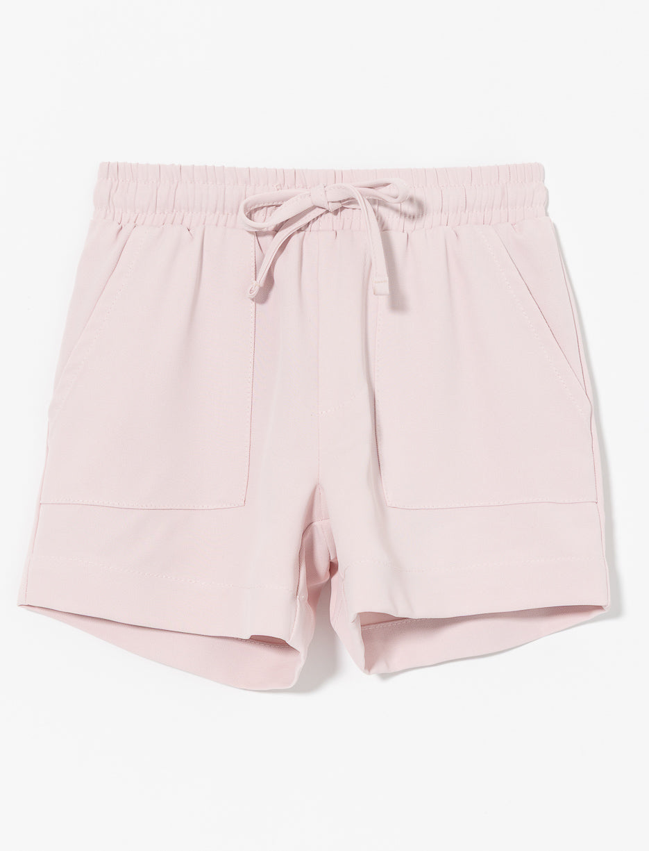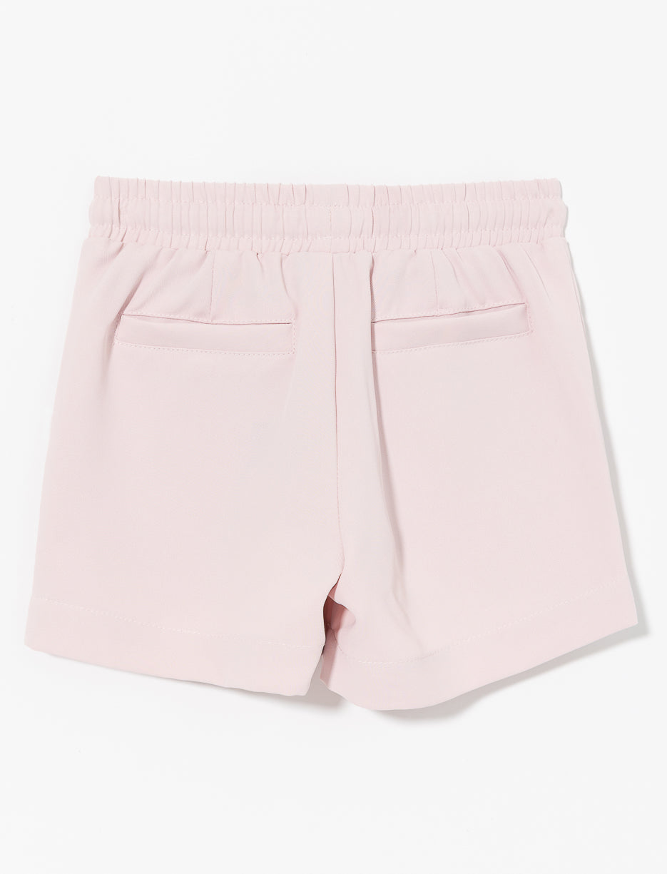 Ce short uni pour petite fille combine style et praticité. La taille élastique avec cordon ajustable assure un ajustement parfait, tandis que le tissu challis offre légèreté et confort. Deux poches latérales pratiques complètent ce basique incontournable.