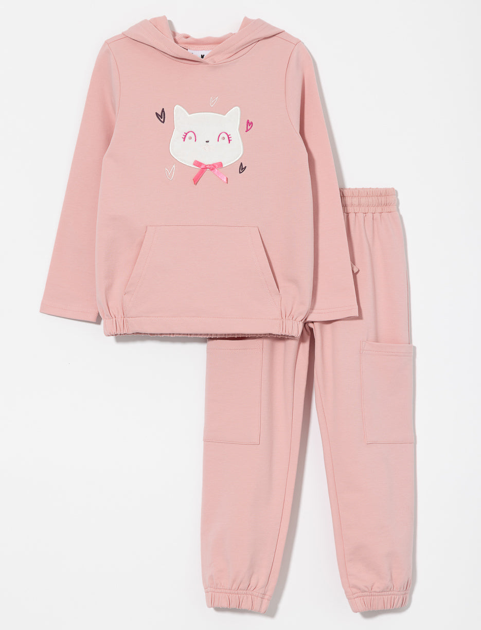 Un ensemble douillet et pratique pour toutes ses activités du quotidien. Le motif chat brodé et les petits cœurs ajoutent une touche de tendresse à un look tout confort.