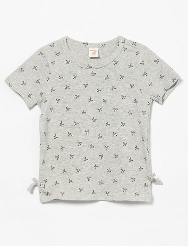 Ce t-shirt à manches courtes rehaussé de jolis nœuds sur les côtés combine simplicité et charme. Léger et confortable, il s’associe facilement à toutes ses tenues pour un look à la fois décontracté et soigné.