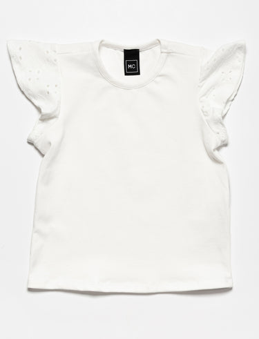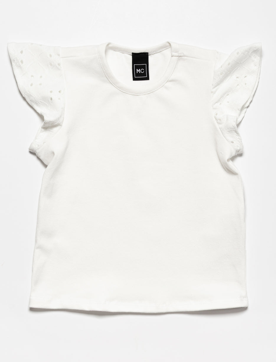 Un t-shirt délicat qui joue la carte du charme avec ses manches papillon en broderie. Idéal pour ajouter une touche coquette à toutes ses tenues.
