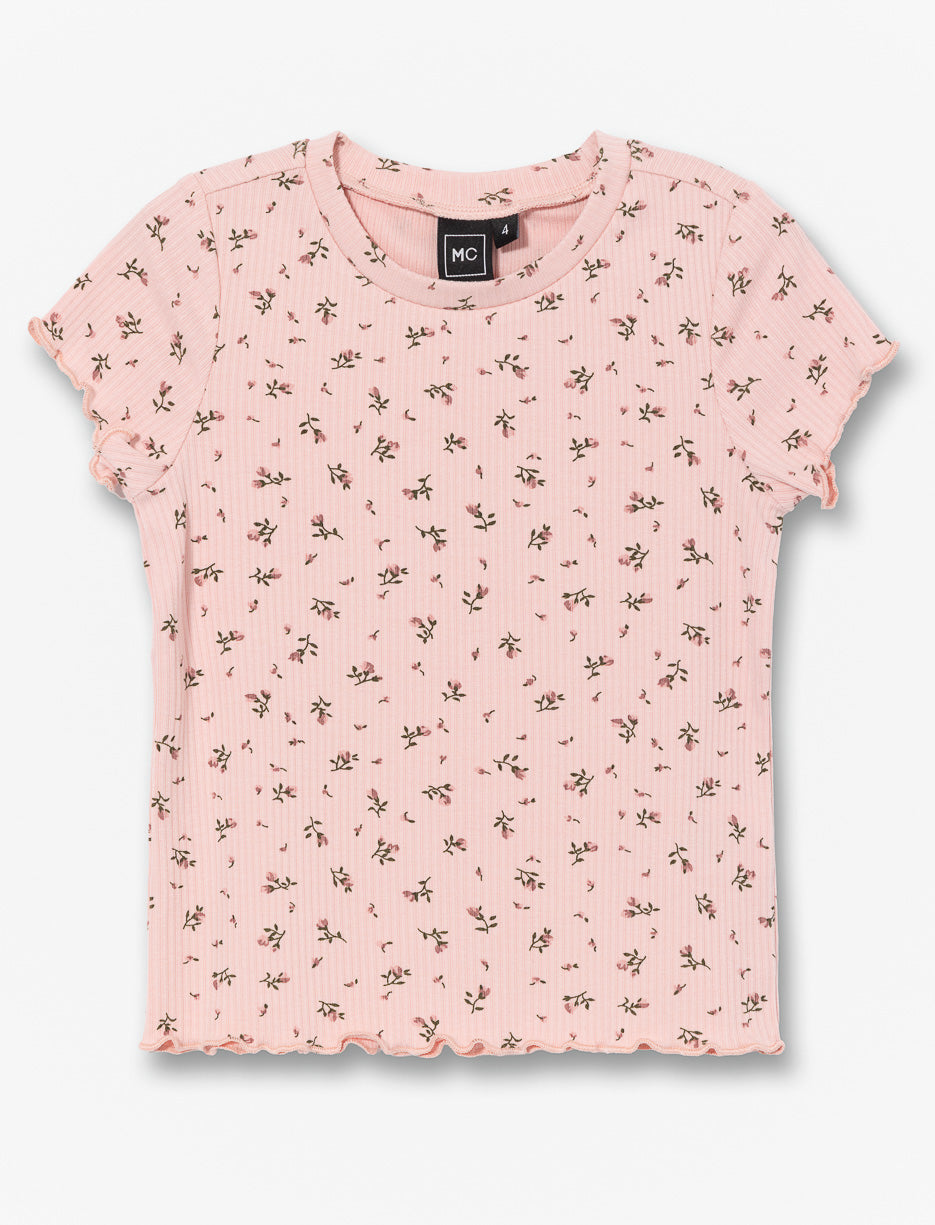 Un t-shirt fleuri parfait pour les petites filles! Ses motifs colorés et ses rebords ondulés fantaisistes aux manches et à l'ourlet créent un look adorable. Confortable avec son col rond et ses manches courtes, c'est l'allié idéal pour un style joyeux et mignon!