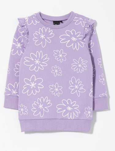 Une tunique douce et confortable avec un imprimé floral ludique et de jolis volants aux épaules. Parfaite pour jouer ou se détendre avec style.