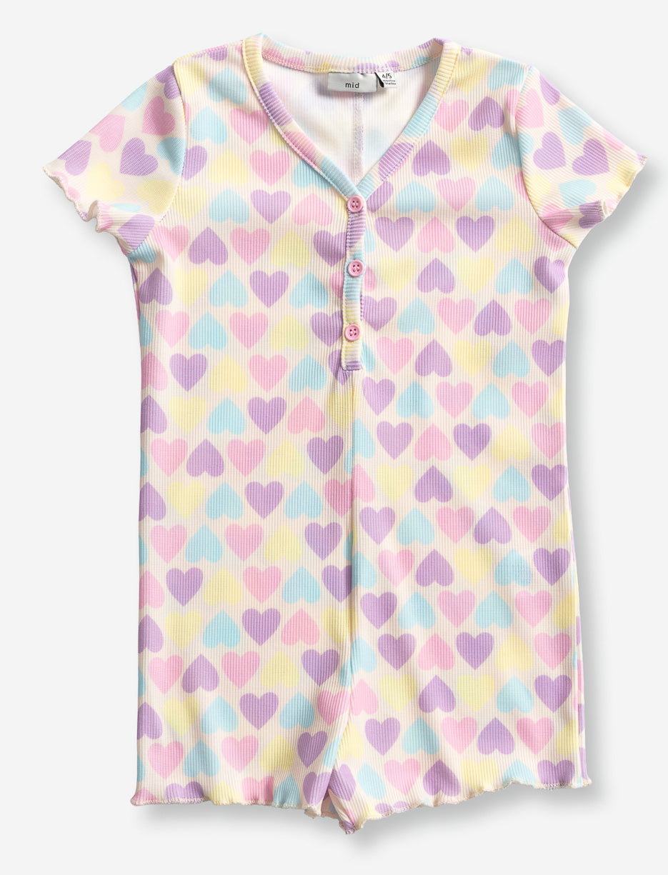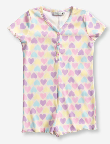 Un pyjama une pièce facile à aimer. Les petits cœurs ajoutent une touche douce, tandis que la fermeture boutonnée lui permet de l’enfiler simplement, pour des moments de détente confortables.