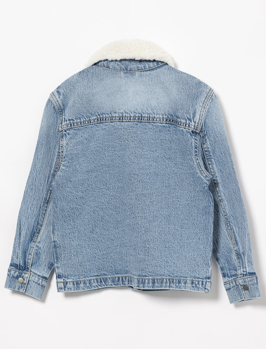 Ajoutez une dose de style à sa garde-robe avec cette veste en denim à col sherpa. Chaude, pratique et pleine de caractère, elle accompagne votre garçon lors de ses aventures automnales avec confort et attitude.