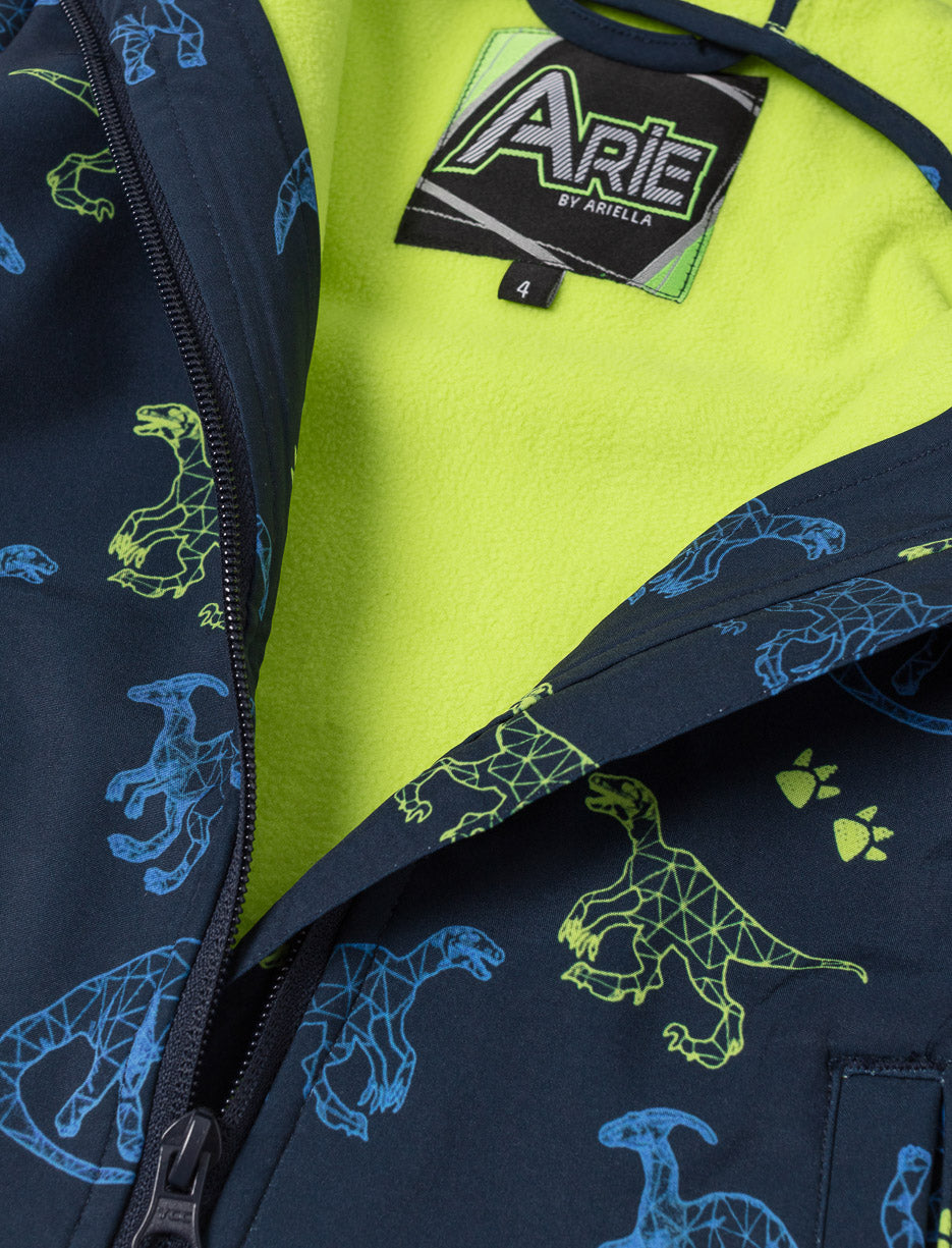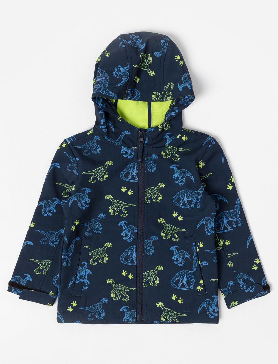 Ce manteau à capuchon orné de motifs dinosaures apportera chaleur et style à ton petit aventurier. Sa doublure en micropolar doux et sa coquille résistante en font le choix idéal pour affronter les journées fraîches avec confort.