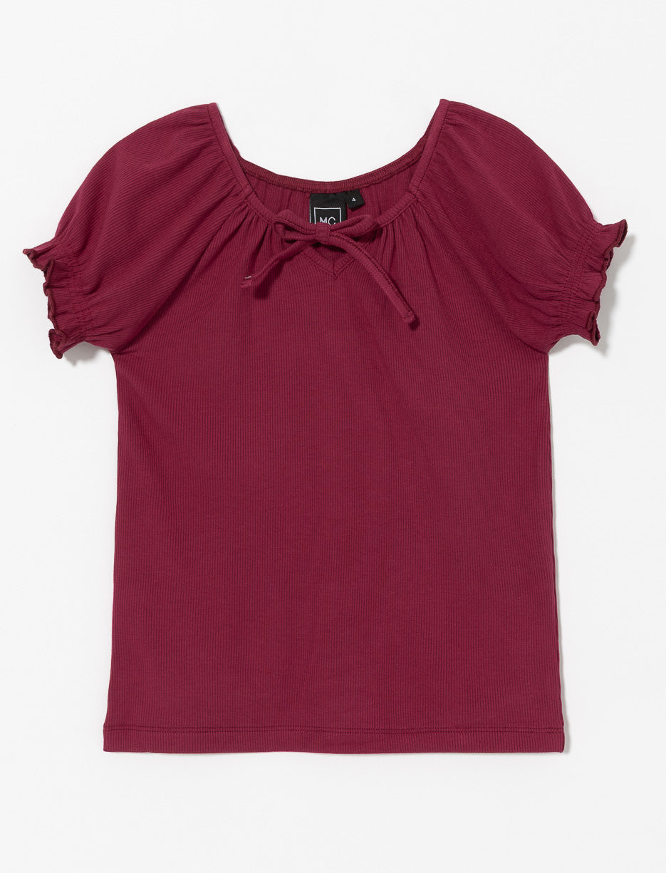 Cette blouse en tissu côtelé offre un confort léger que votre fille adorera. Ses manches courtes raglan à élastique et son encolure dégagée ajustable grâce au cordon en font une pièce facile à porter au quotidien.