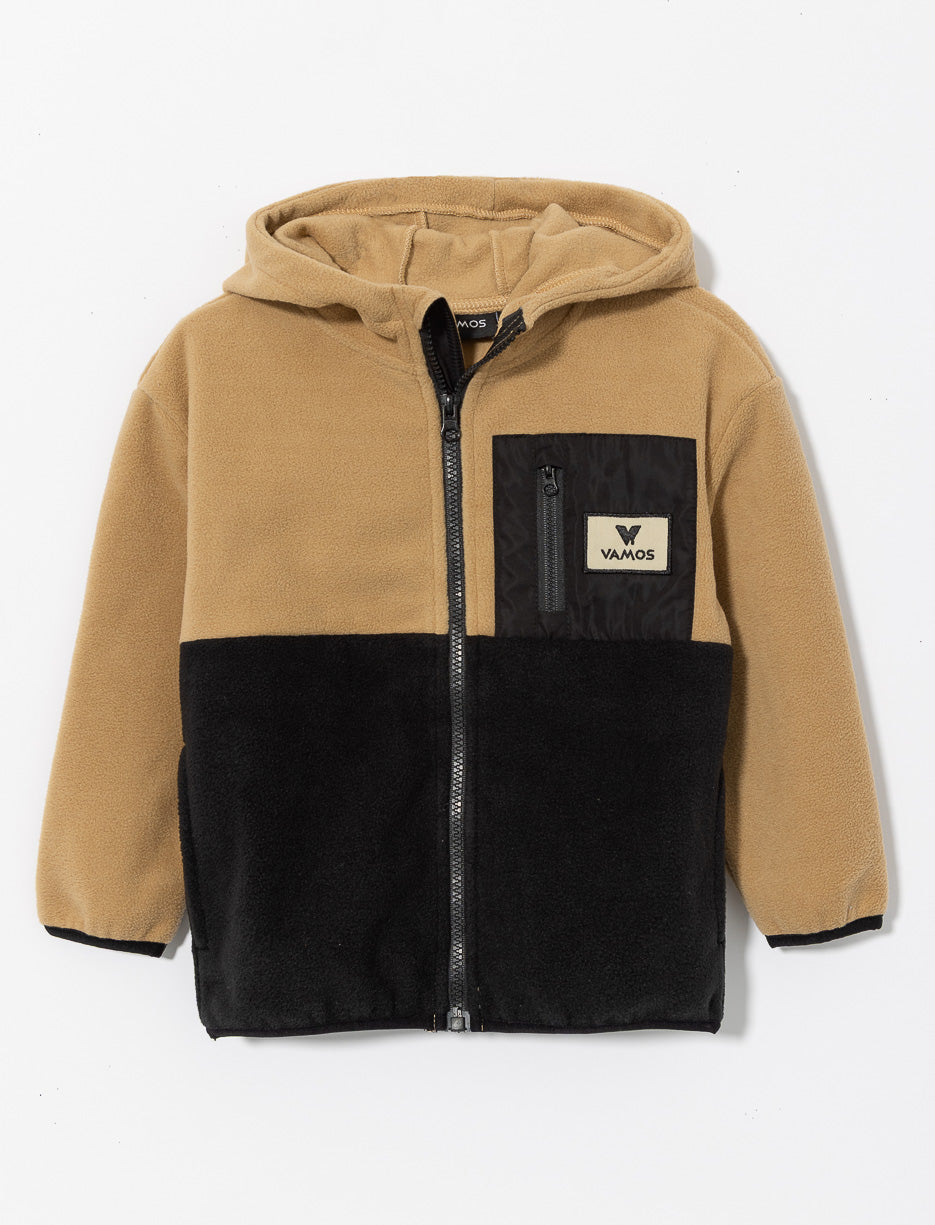 Parfait pour les journées fraîches, cette veste zippée en polar garde votre garçon bien au chaud. Son design à blocs de couleurs et son capuchon douillet ajoutent une touche cool à toutes ses aventures dehors.