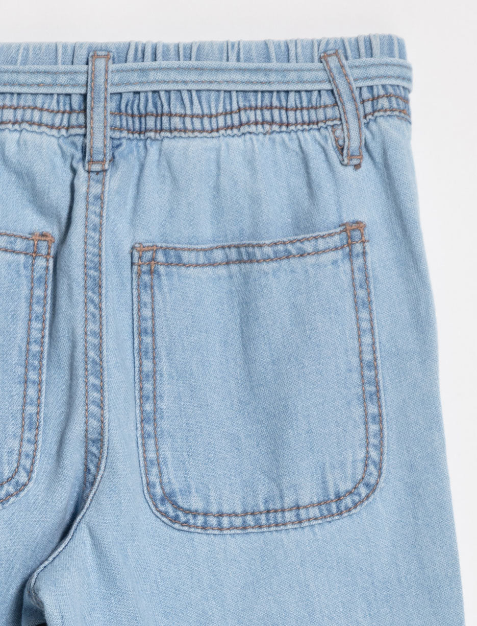 Jean confortable à enfiler doté d'une coupe à jambe large, de deux poches pratiques et d'une ceinture à la taille. Idéal pour les journées d'école ou les jeux en plein air, ce jean offre liberté de mouvement et style sans compromis.