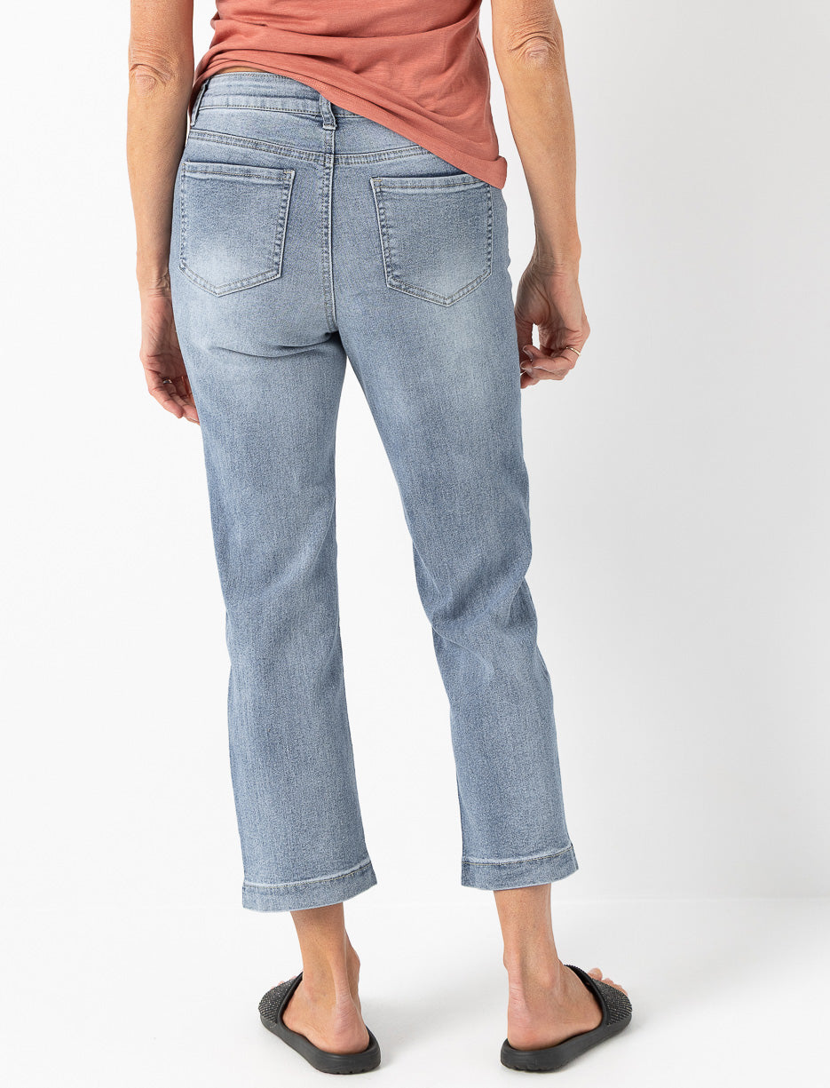 Jean droit à taille régulière délavé