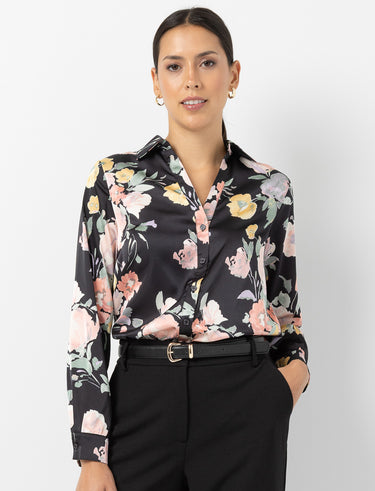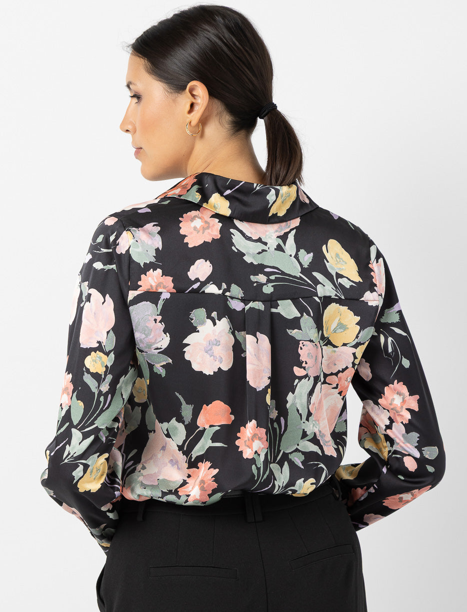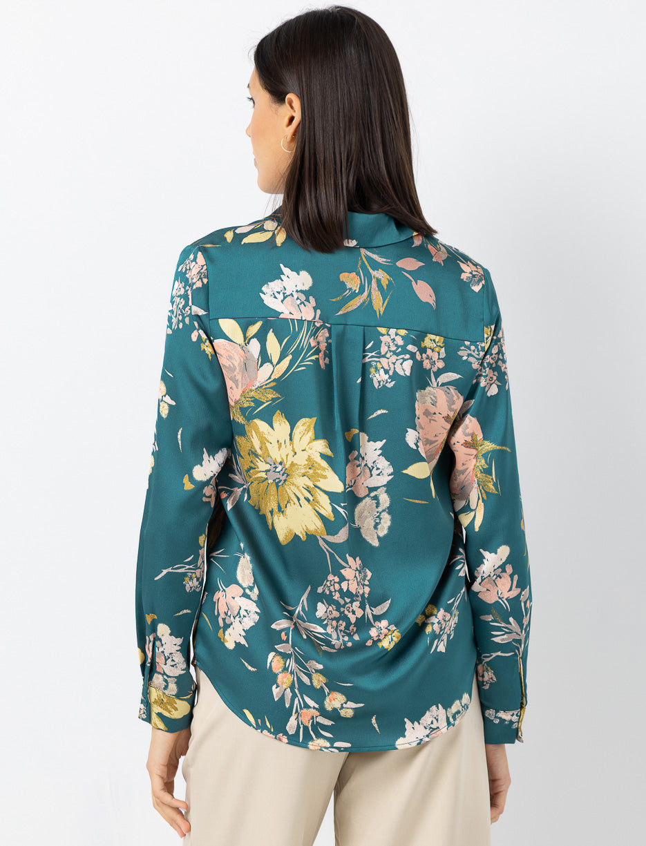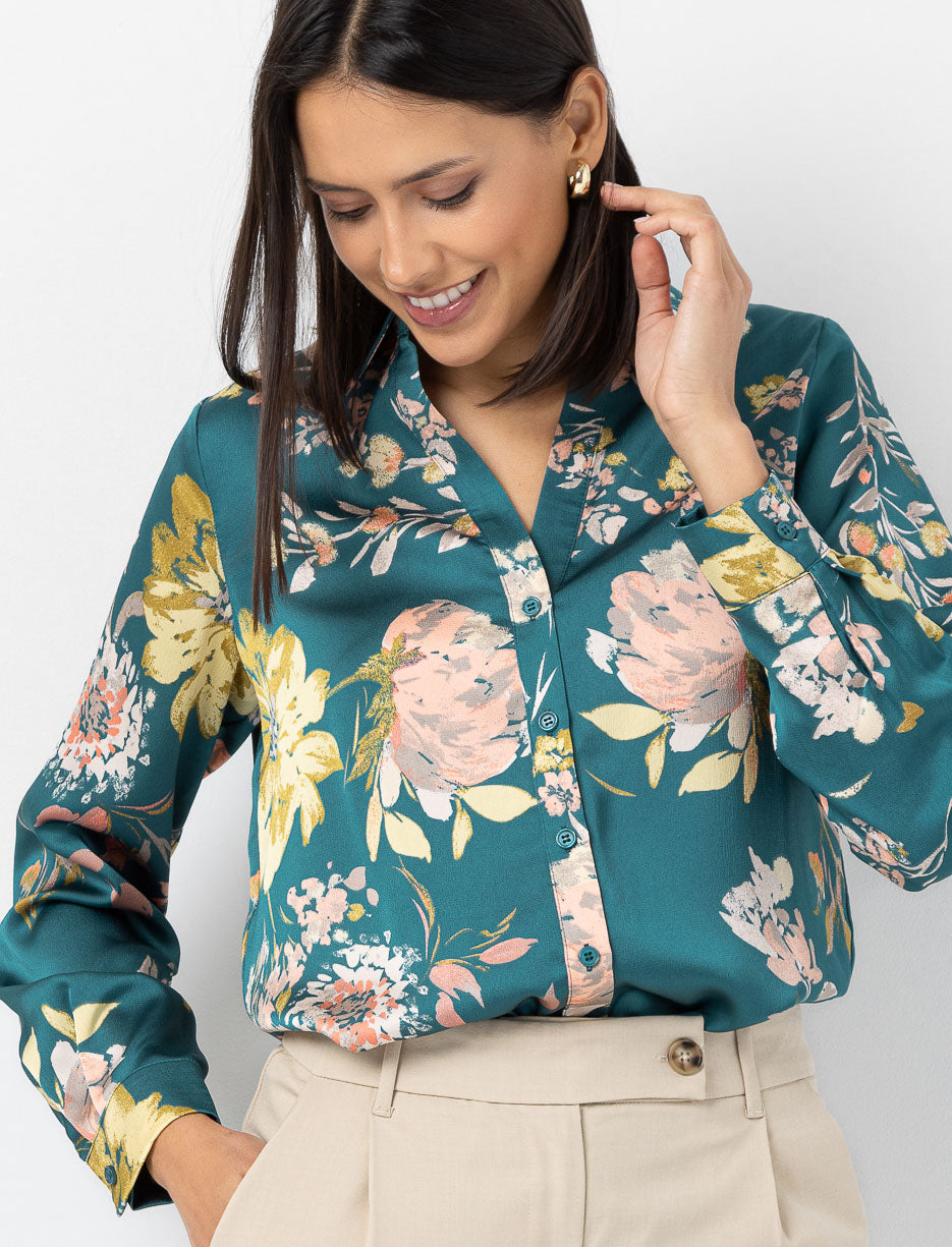 Cette chemise satinée au motif floral apporte élégance et féminité à vos tenues. Fluide et raffinée, elle se porte aussi bien au bureau qu’en soirée pour un style chic et moderne.