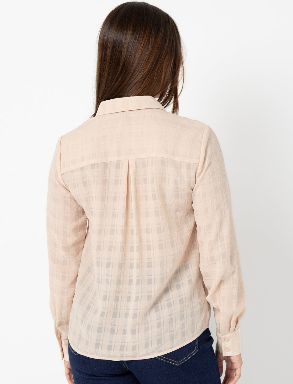Apportez une touche chic et légère à vos tenues avec cette chemise à carreaux ton sur ton. Son style classique se combine facilement avec un jean ou une jupe pour un look polyvalent.