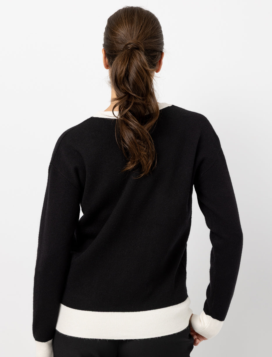 Ce cardigan contrasté séduit par ses finitions élégantes et ses boutons décoratifs. Avec ses poches pratiques et son style raffiné, il apporte une touche chic à vos tenues du quotidien.