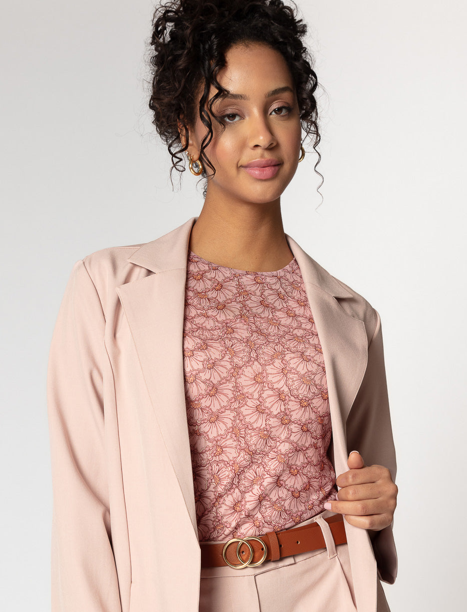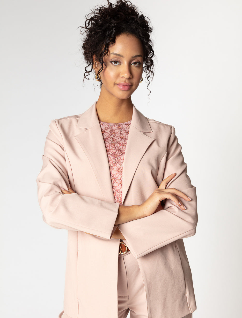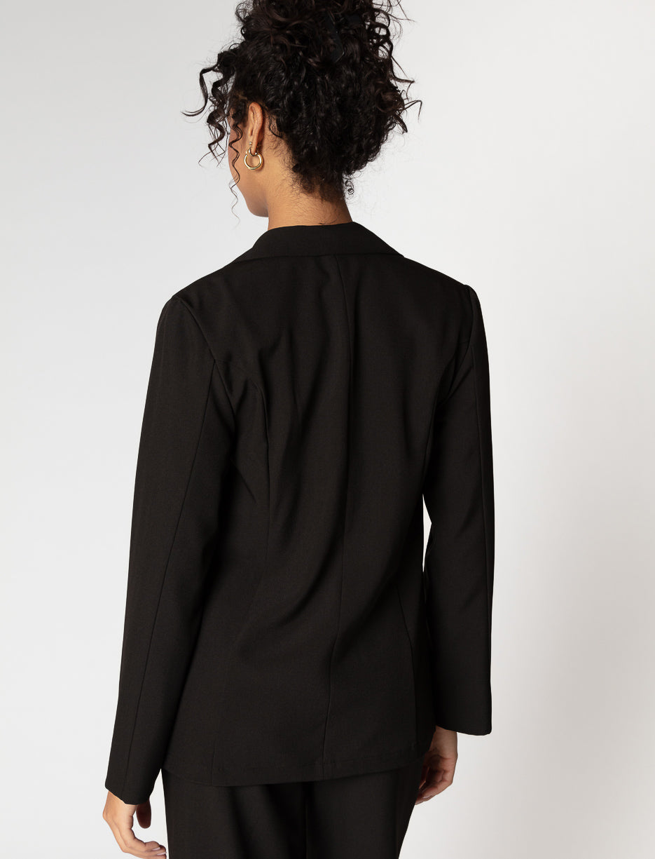 Ce veston fluide est l’allié parfait pour une silhouette sophistiquée en toute simplicité. Sa coupe structurée apporte une élégance naturelle, idéale pour le bureau ou une sortie chic.