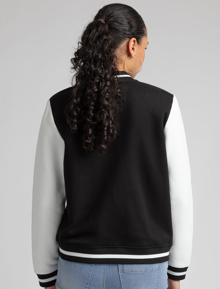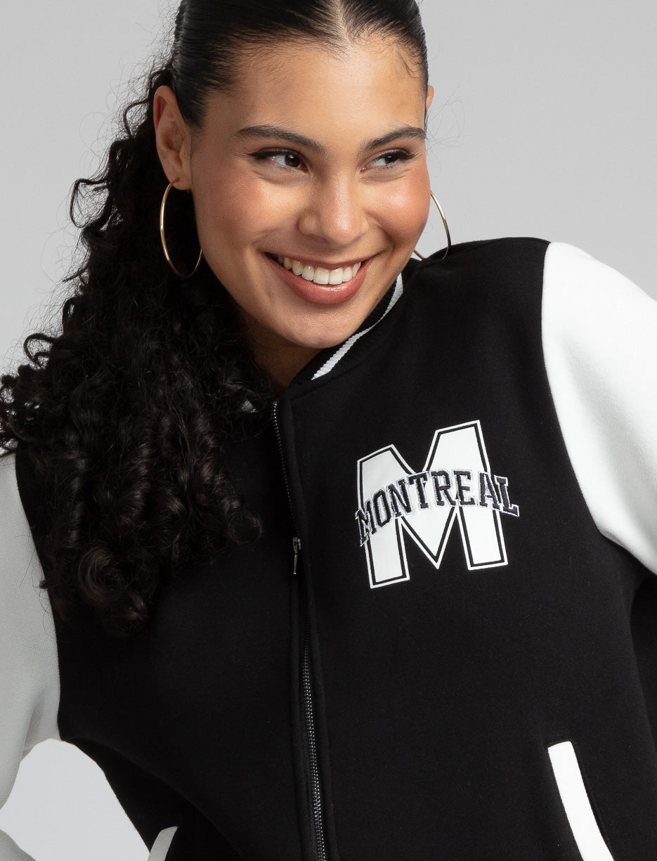 Ce blouson combine l'esthétique rétro universitaire avec une touche moderne. Agencez-le à un jean ou une robe décontractée pour un look polyvalent et super tendance.