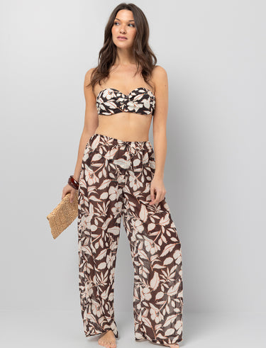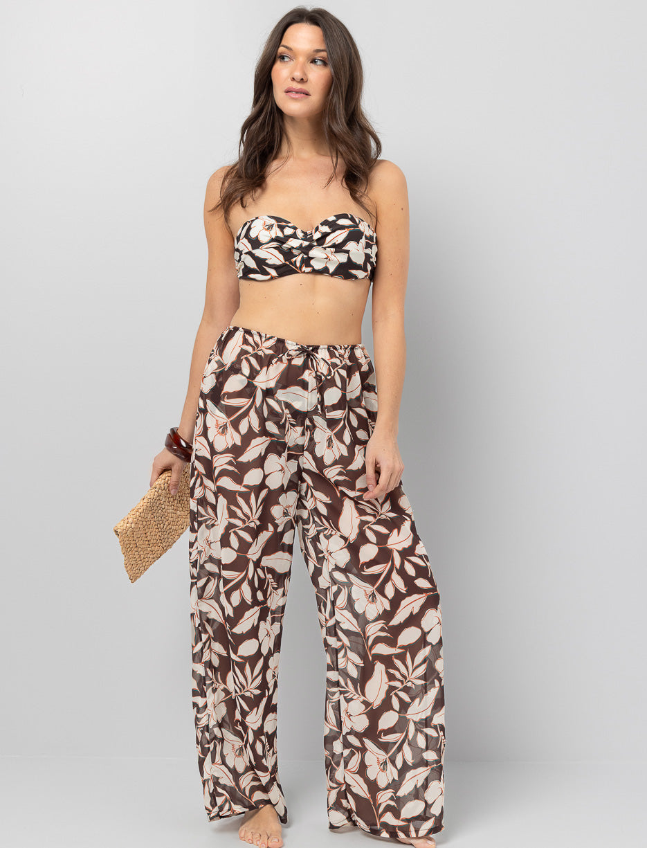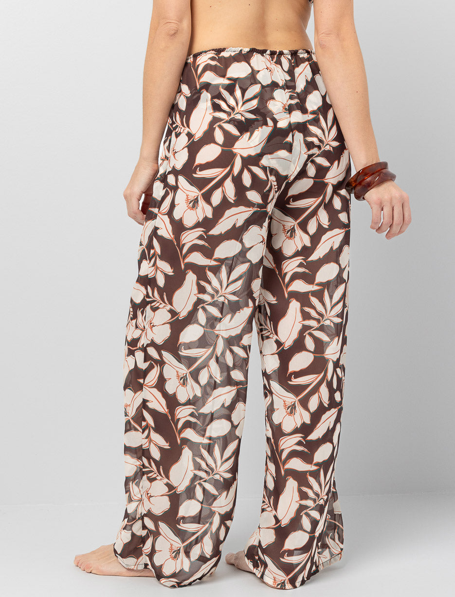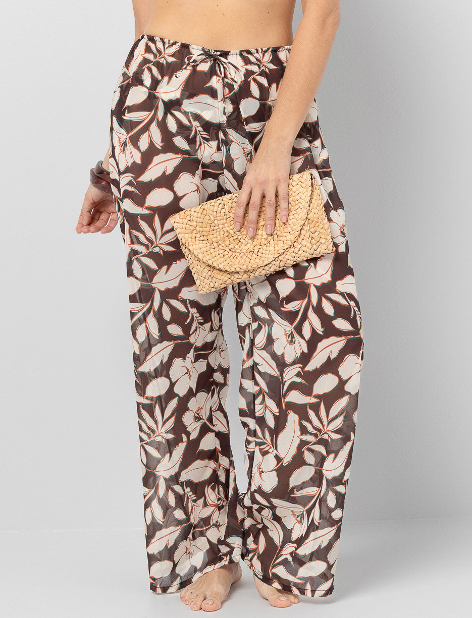 Ce pantalon en voile léger est parfait à porter par-dessus un maillot. Sa jambe large et sa taille avec cordon offrent une allure fluide et décontractée, idéale pour la plage ou les escapades au soleil.