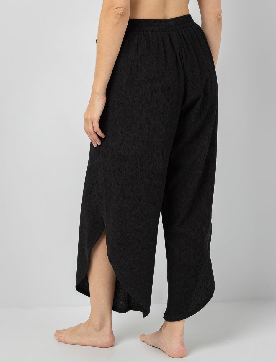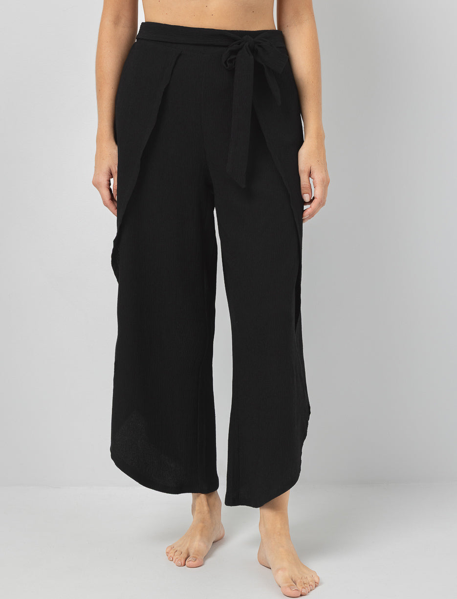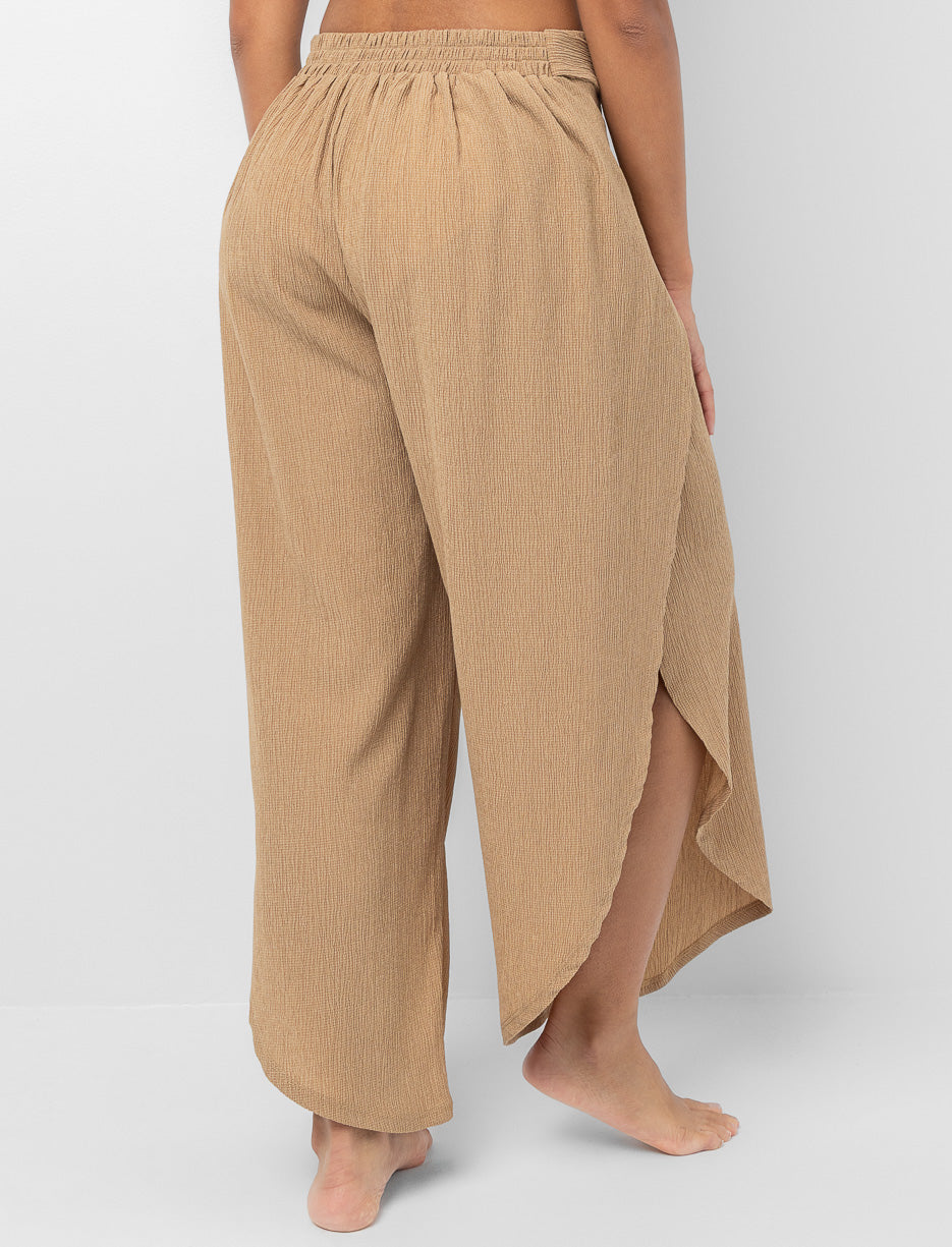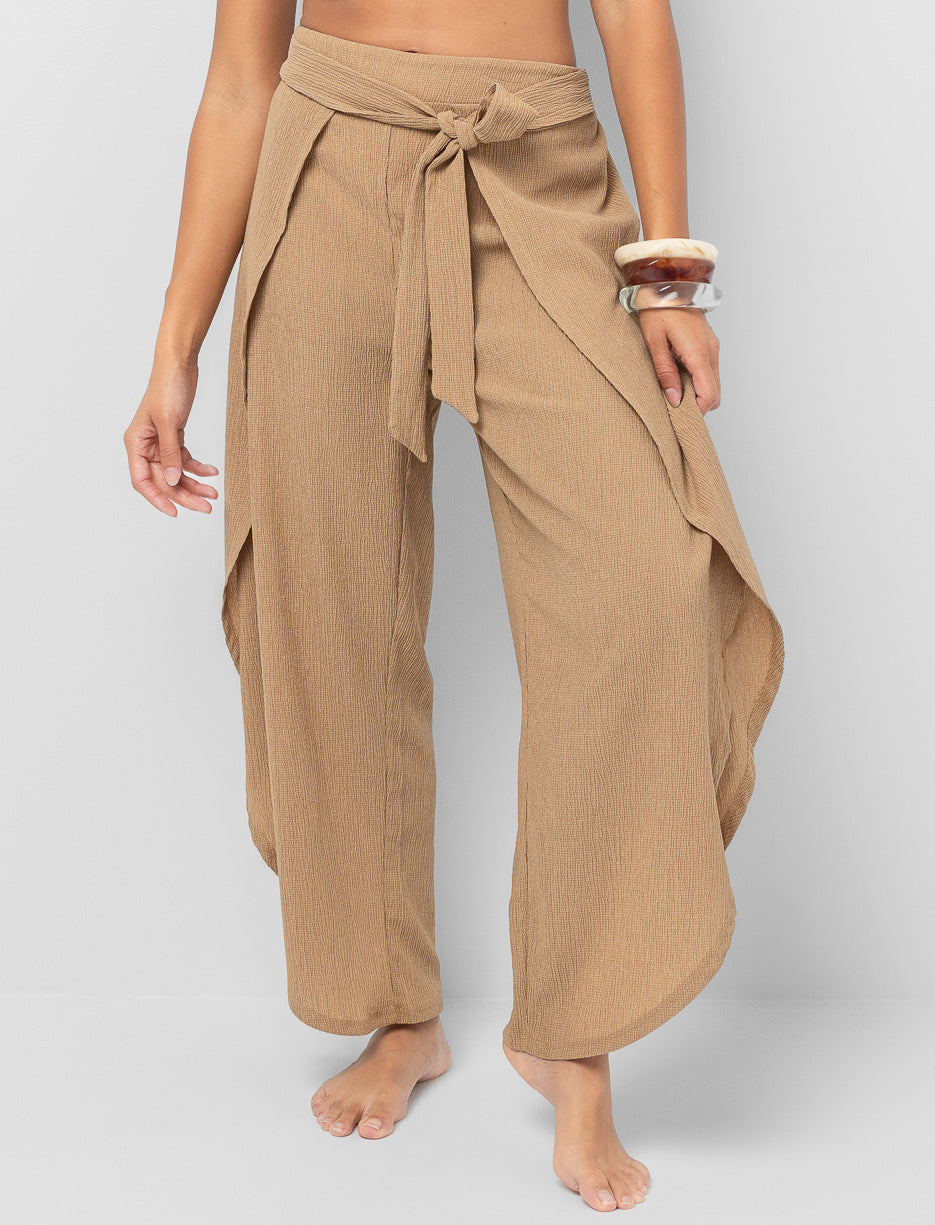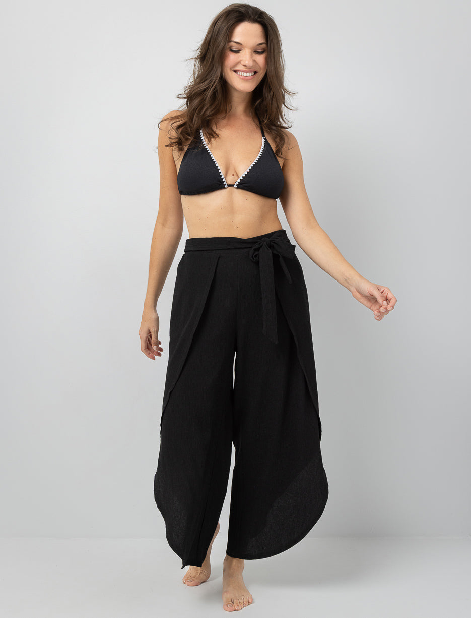 Ces pantalons texturé apportent une dose de style instantané à vos journées au bord de l’eau. Leur ouverture avant et leur taille nouée créent un mouvement fluide et élégant, parfait pour rehausser votre look sans effort.