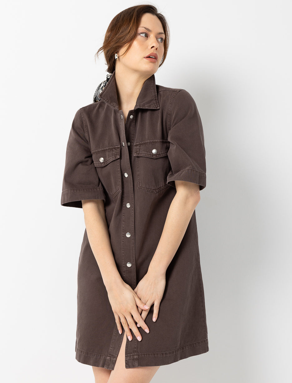 Avec ses boutons pression et ses poches à rabat, cette robe affiche une allure utilitaire tendance, parfaite pour un look décontracté, mais affirmé.