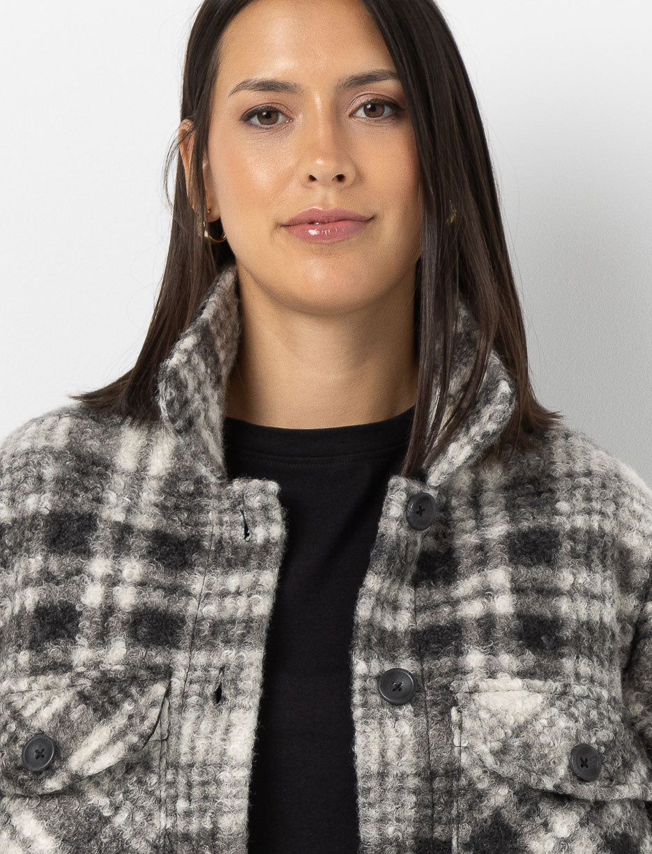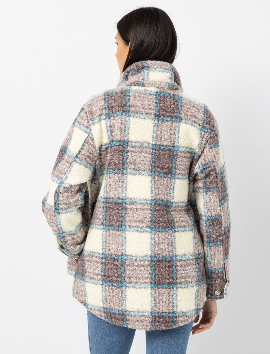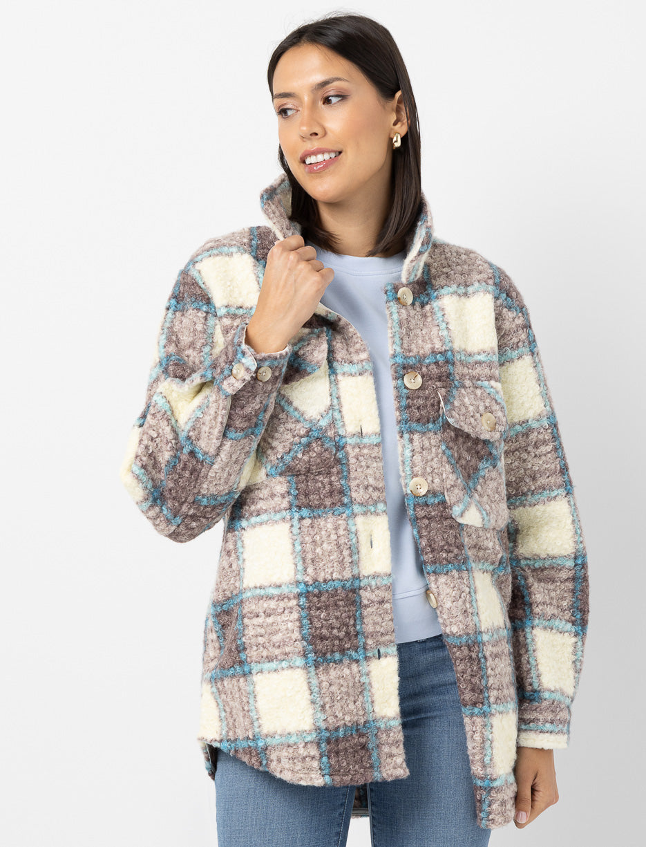 Douce, chaude et tendance, cette veste-chemise à carreaux est parfaite pour la superposition. Sa coupe ample et son tissu bouclé apportent une touche de confort et de style au quotidien.