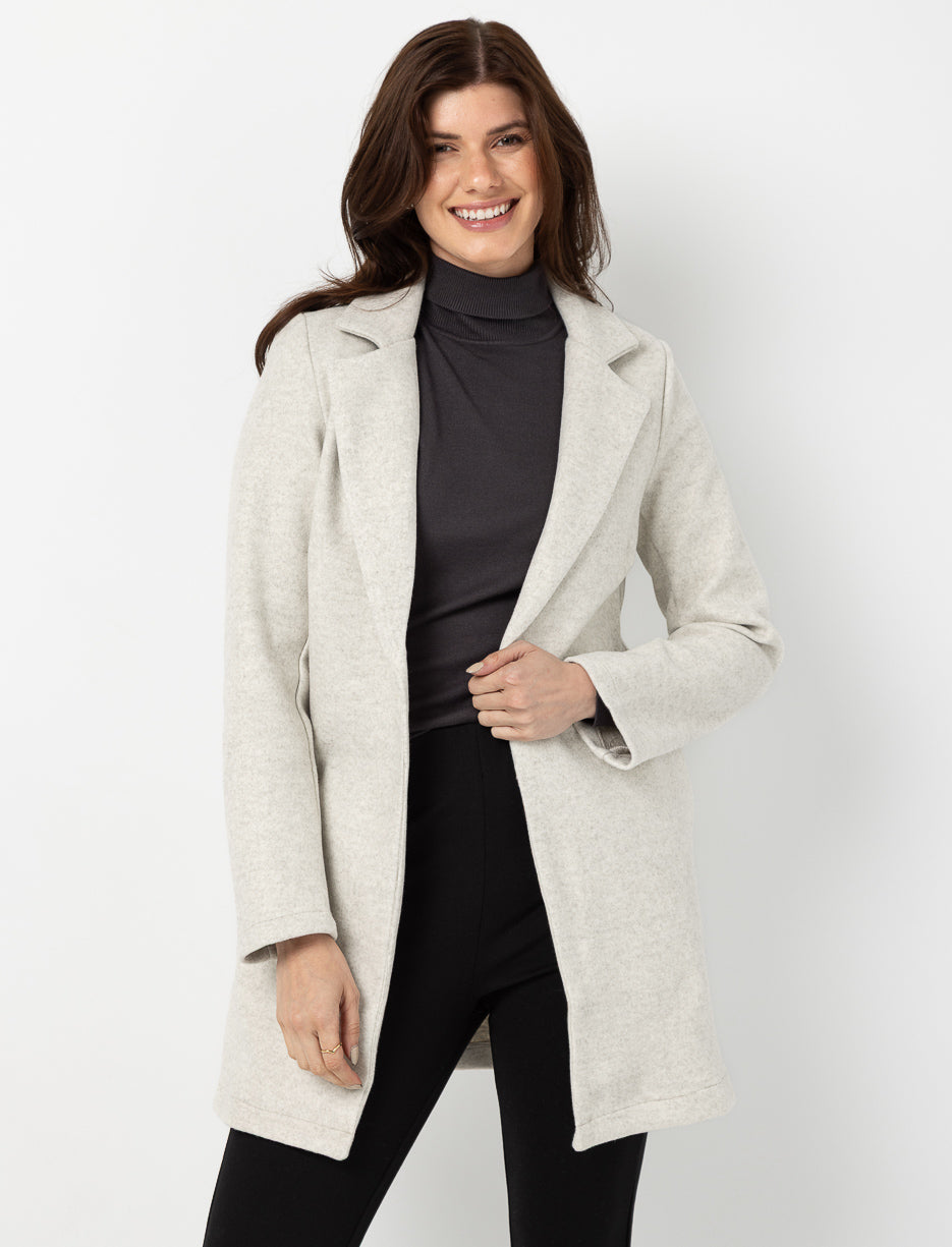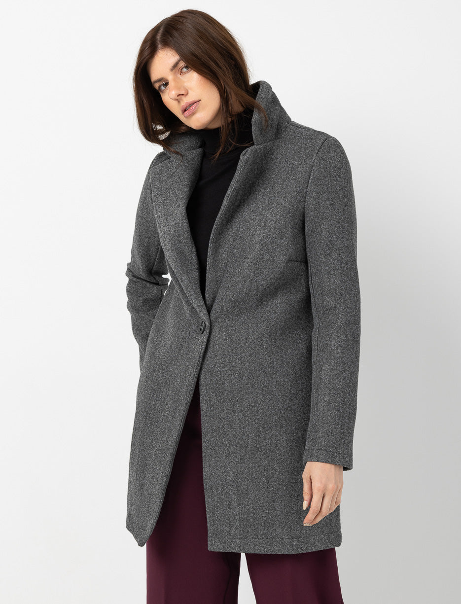 Un manteau élégant à la coupe droite, fermé par un unique bouton, parfait pour compléter vos looks avec une touche chic et intemporelle.