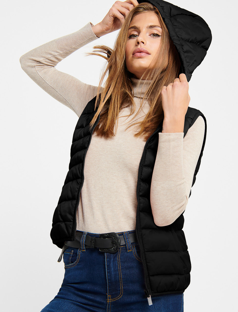 Veste sans manches matelassée à capuchon