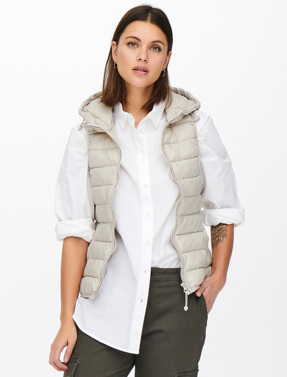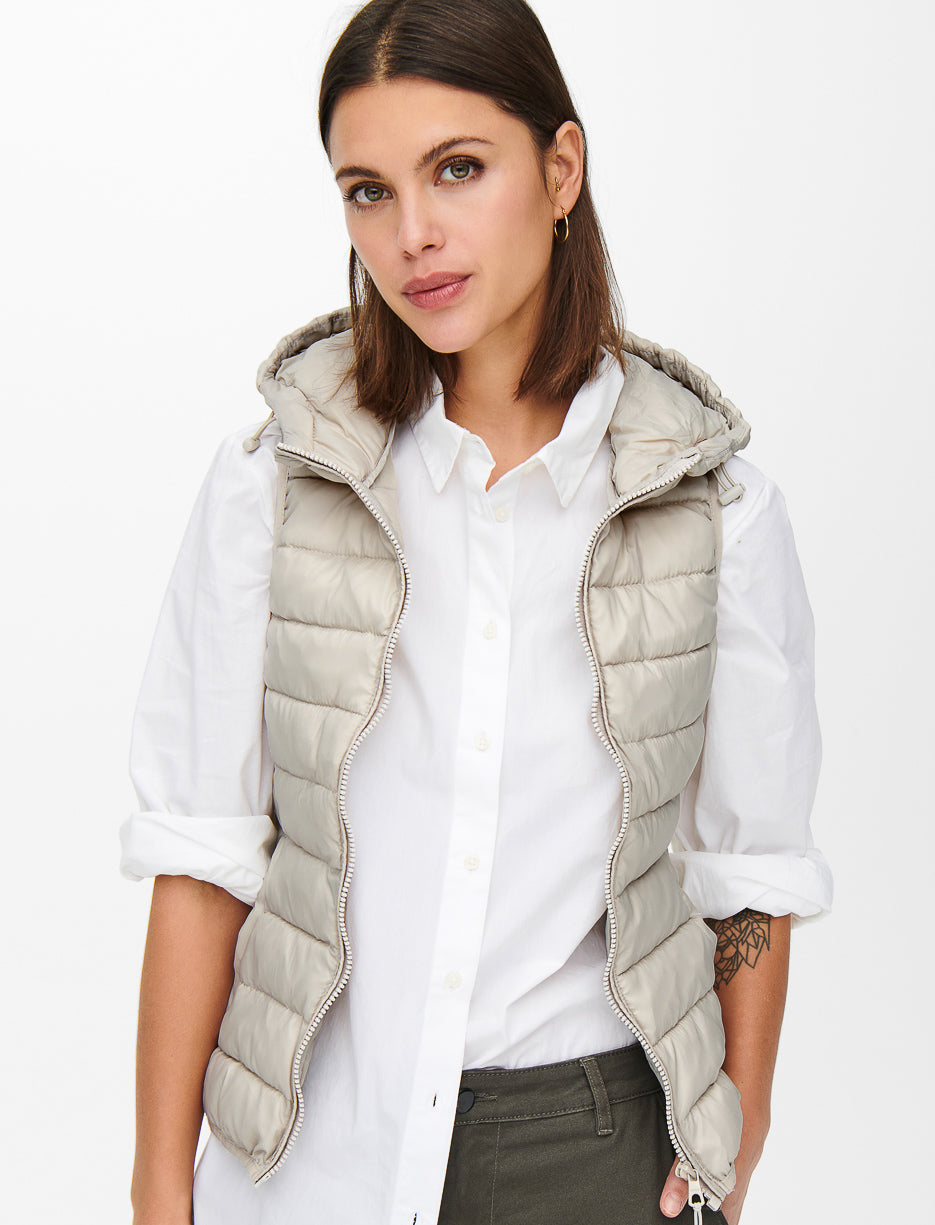 Une veste sans manches matelassée avec capuchon, idéale pour superposer et ajouter chaleur et style à vos tenues de mi-saison.