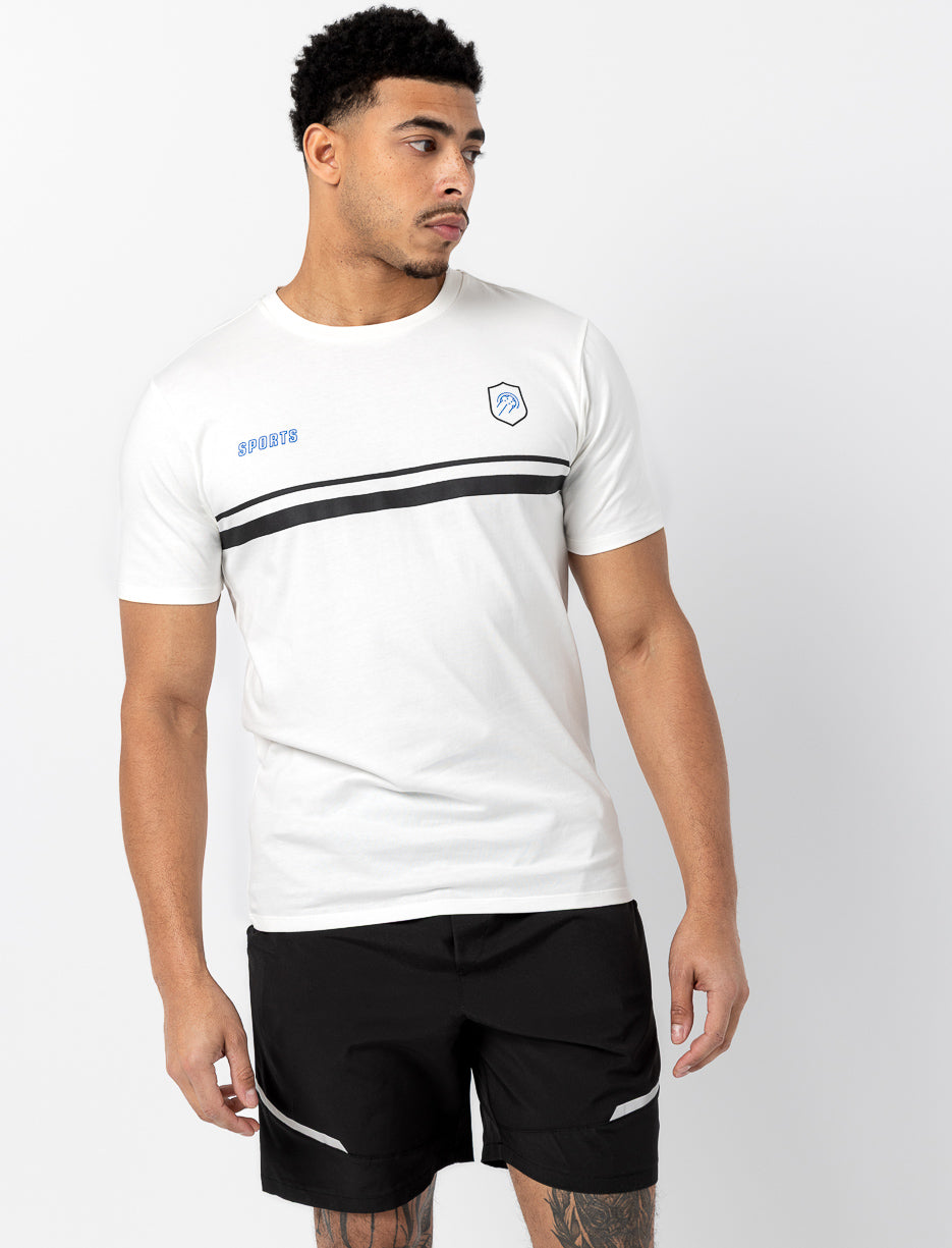 T-shirt de sport pour hommes en coton organique 100%. Manches courtes et col rond avec imprimé poitrine. Un choix responsable et confortable pour vos activités quotidiennes et sportives.