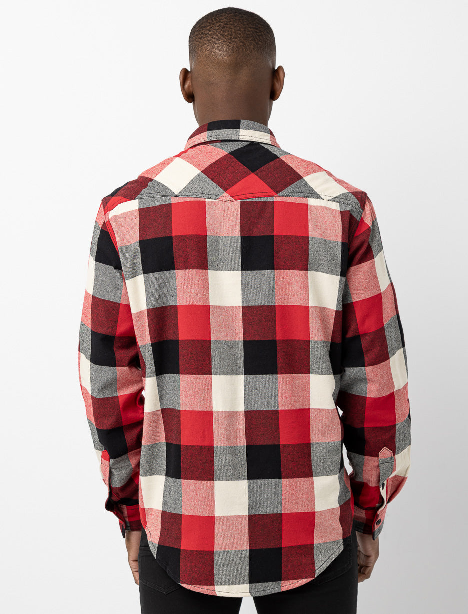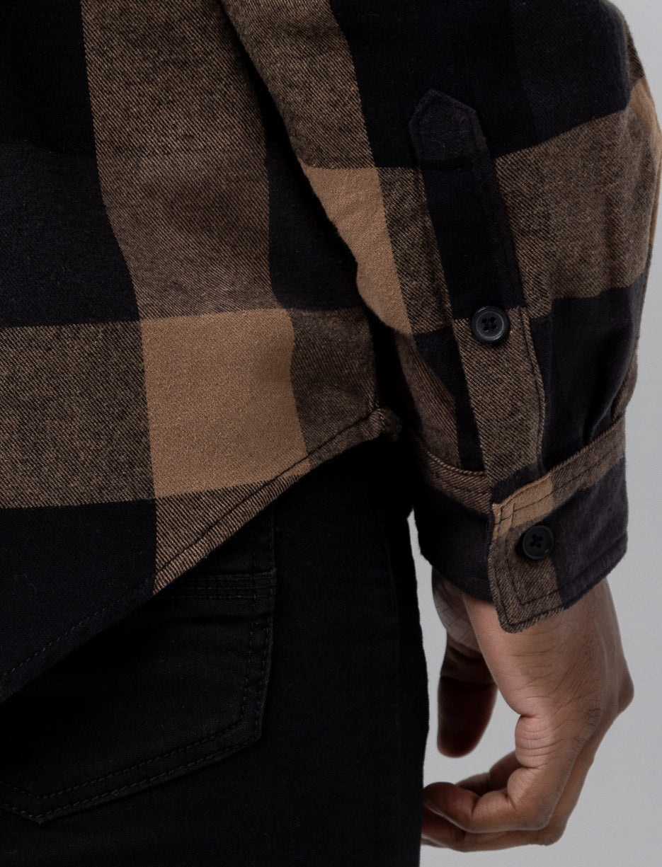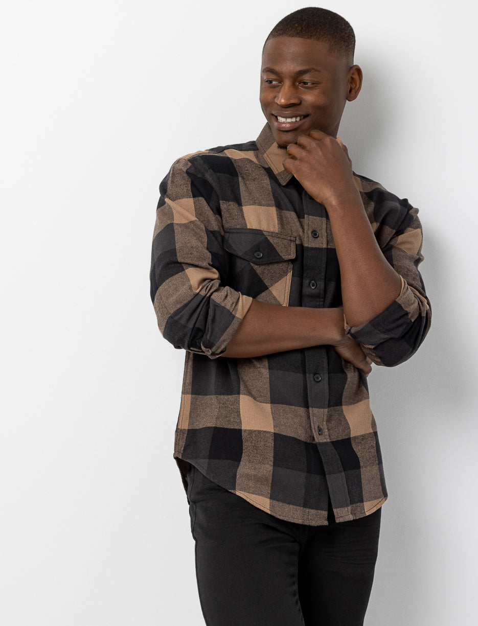 Chemise en flanelle pour homme, à manches longues et col chemisier. Dotée de deux poches avant, d’une fermeture à boutons et d’un motif à carreaux, elle allie confort et style au quotidien.