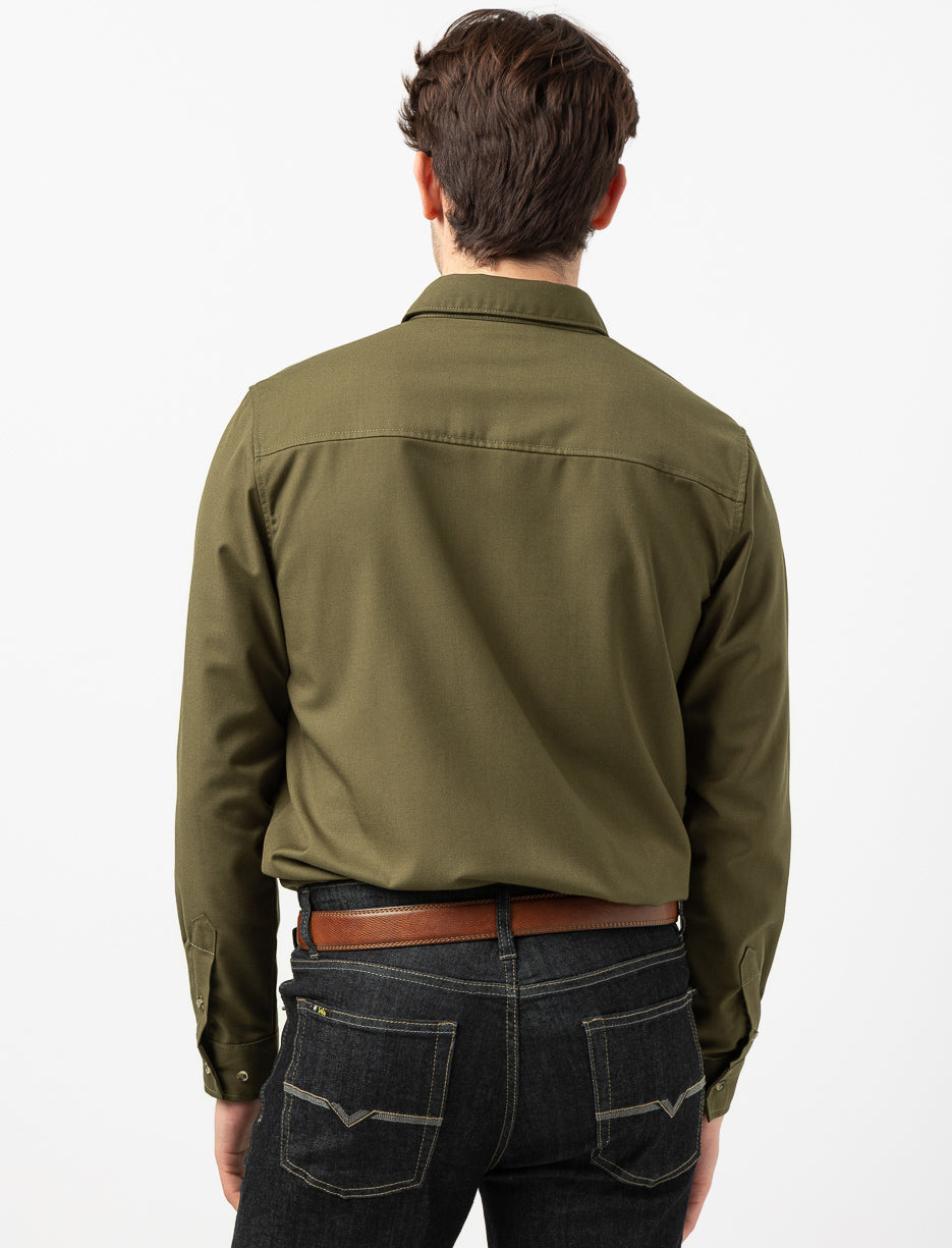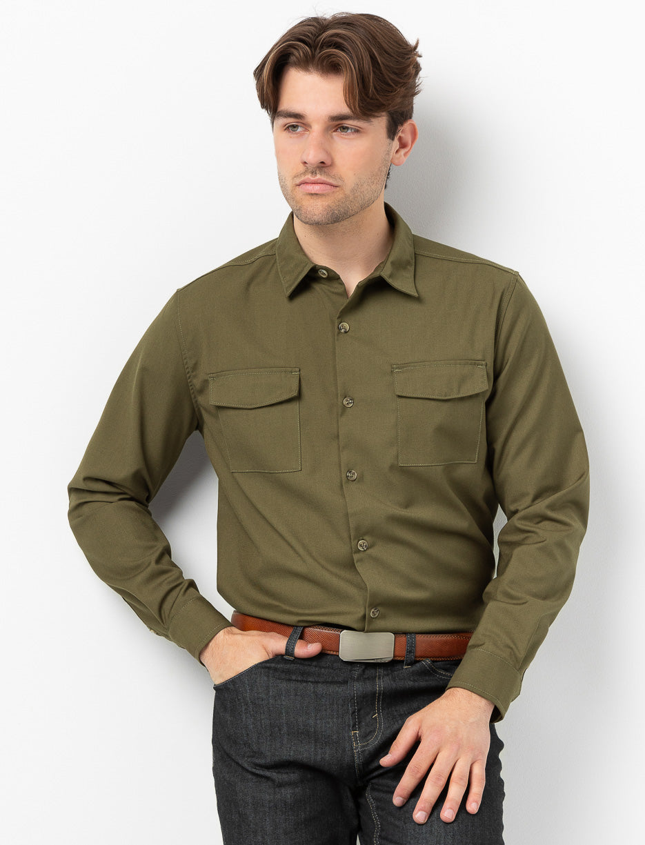 Chemise pour homme à manches longues, couleur unie avec col chemisier. Dotée de deux poches à rabat et d’une fermeture à boutons, elle offre un style classique et polyvalent pour toutes les occasions.
