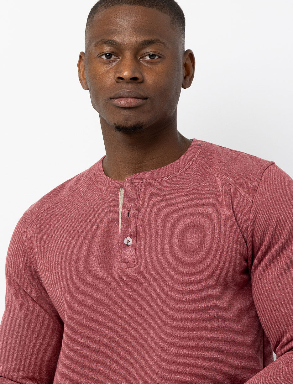 Le classique henley revisité pour vos journées décontractées. Avec ses boutons à l'encolure et sa coupe confortable, ce t-shirt à manches longues s’impose comme une pièce facile à porter et à agencer.