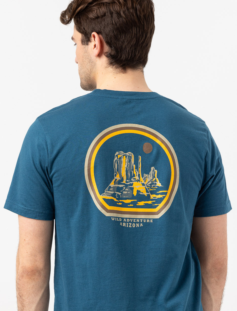 Ce t-shirt présente un petit imprimé de paysage sur la poitrine et un grand visuel au dos. Un modèle confortable au style décontracté inspiré du plein air.