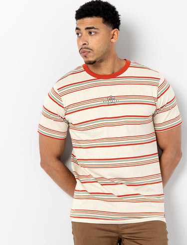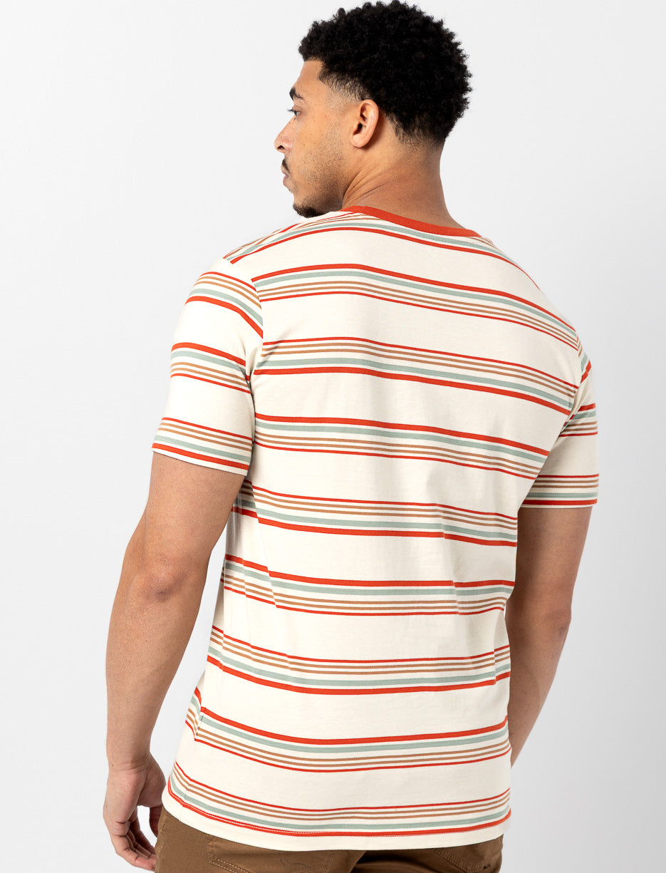 Profitez de ce t-shirt rayé en coton biologique, pensé pour votre confort quotidien. Avec son col rond contrastant et ses manches courtes, il allie simplicité et élégance. Le motif rayé subtil sur le devant complète parfaitement vos tenues.