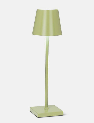Lampe de table LED verte, hauteur 15 po. Rechargeable par USB avec fil inclus, elle propose 3 intensités lumineuses et une autonomie de 6 à 12 heures.