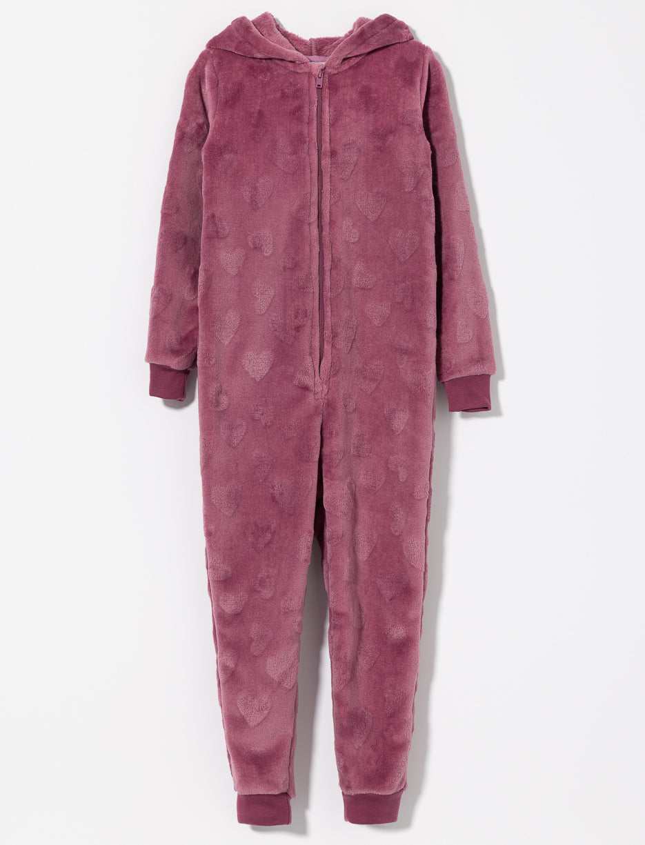 Pyjama 1 pièce en peluche à coeurs - petite fille