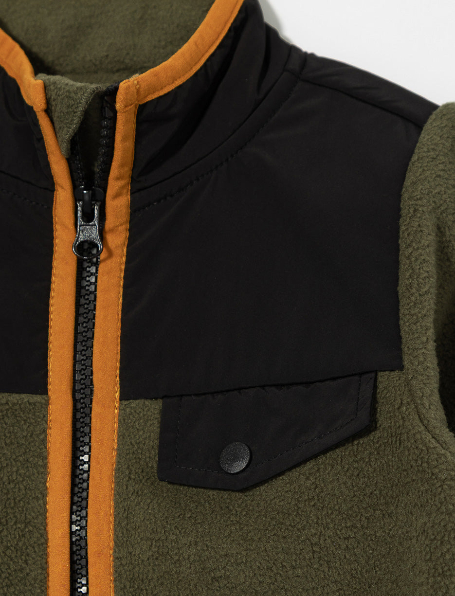 Offrez-lui un confort douillet grâce à ce cardigan en polar à col montant et détails contrastants.