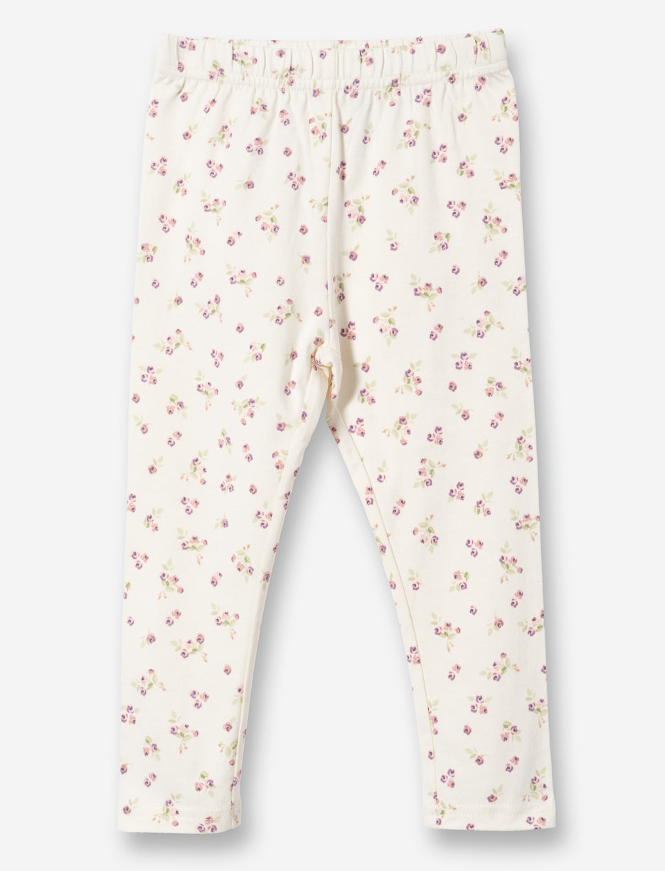 Soft and comfortable long leggings for baby girl featuring an all-over floral print. The elastic waistband provides a perfect, easy fit for unrestricted movement, ideal for playtime and everyday exploration.