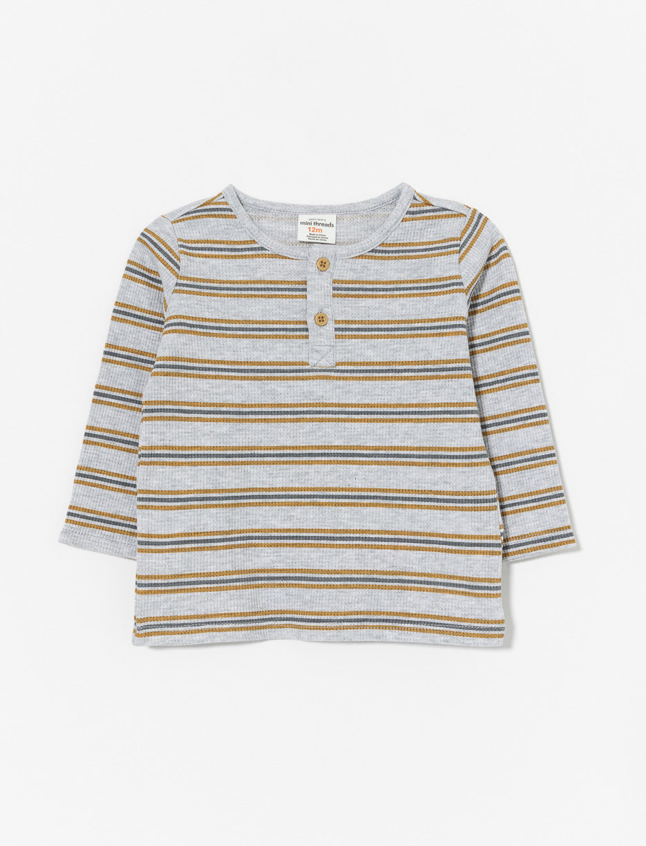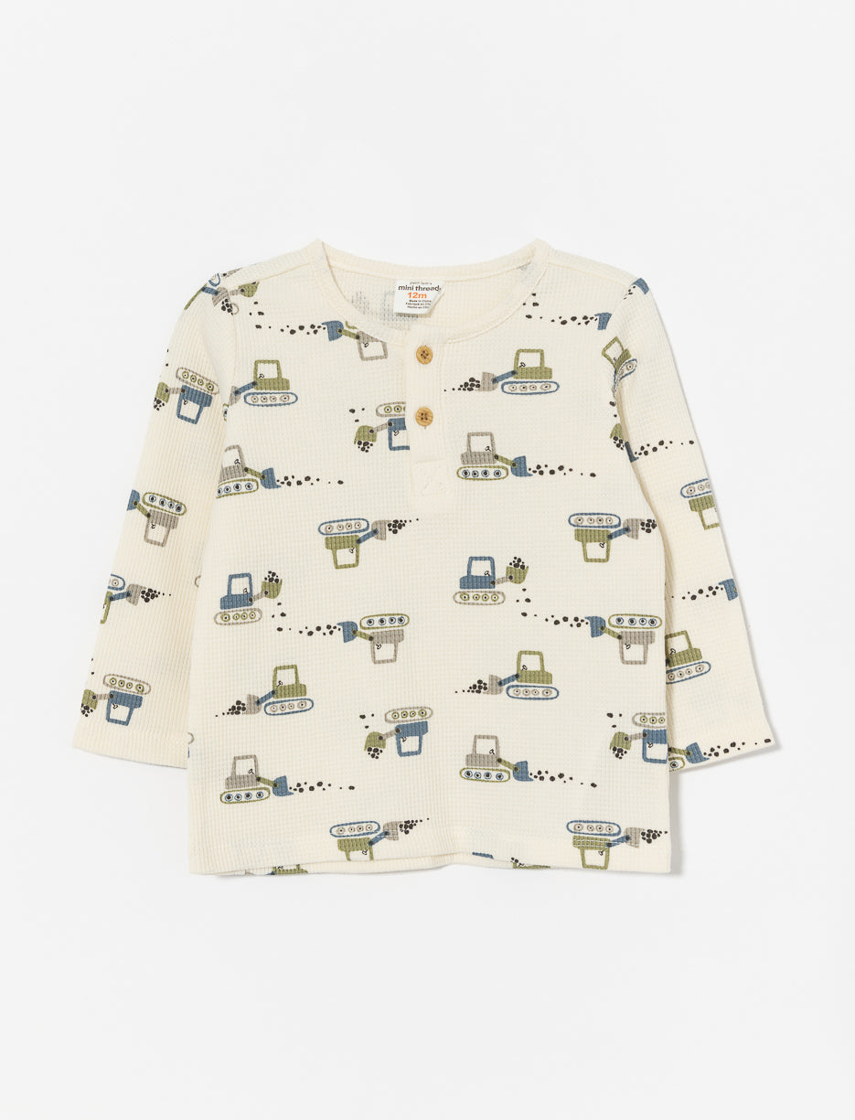 A cozy and trendy look with this 3-piece set featuring a printed thermal Henley T-shirt, comfy fleece pants, and a matching beanie. Perfect for the chilly season.