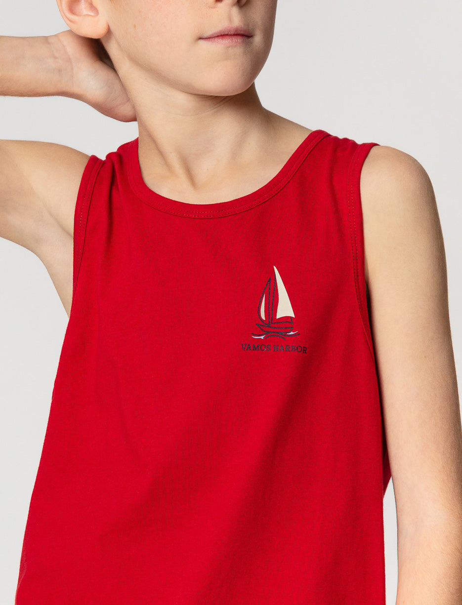 This tank top with a nautical sailboat print is a summer staple for active teen boys. Made from lightweight, breathable fabric, it’s perfect for outdoor activities or lazy days by the beach.