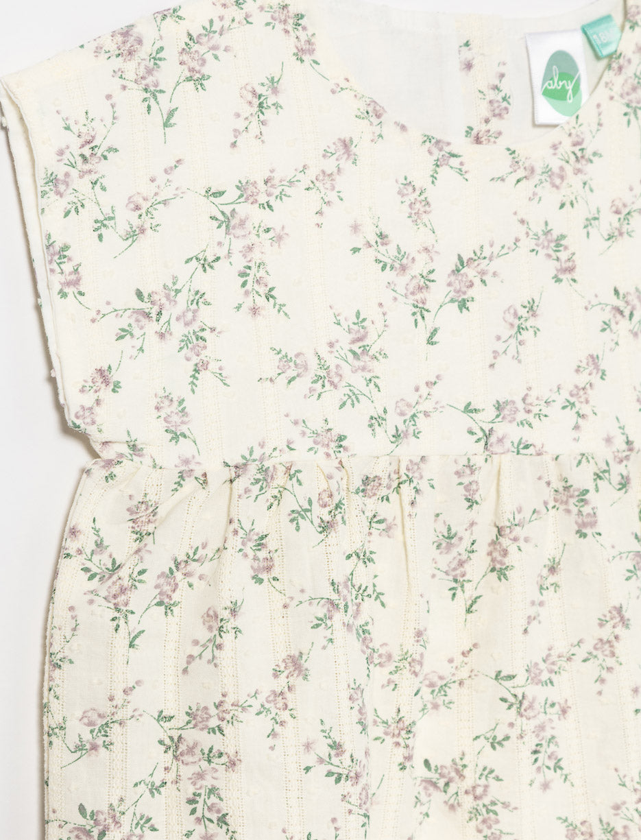 A breeze of softness for little wardrobes: this light back-buttoned dress follows every playful step with gentle charm.