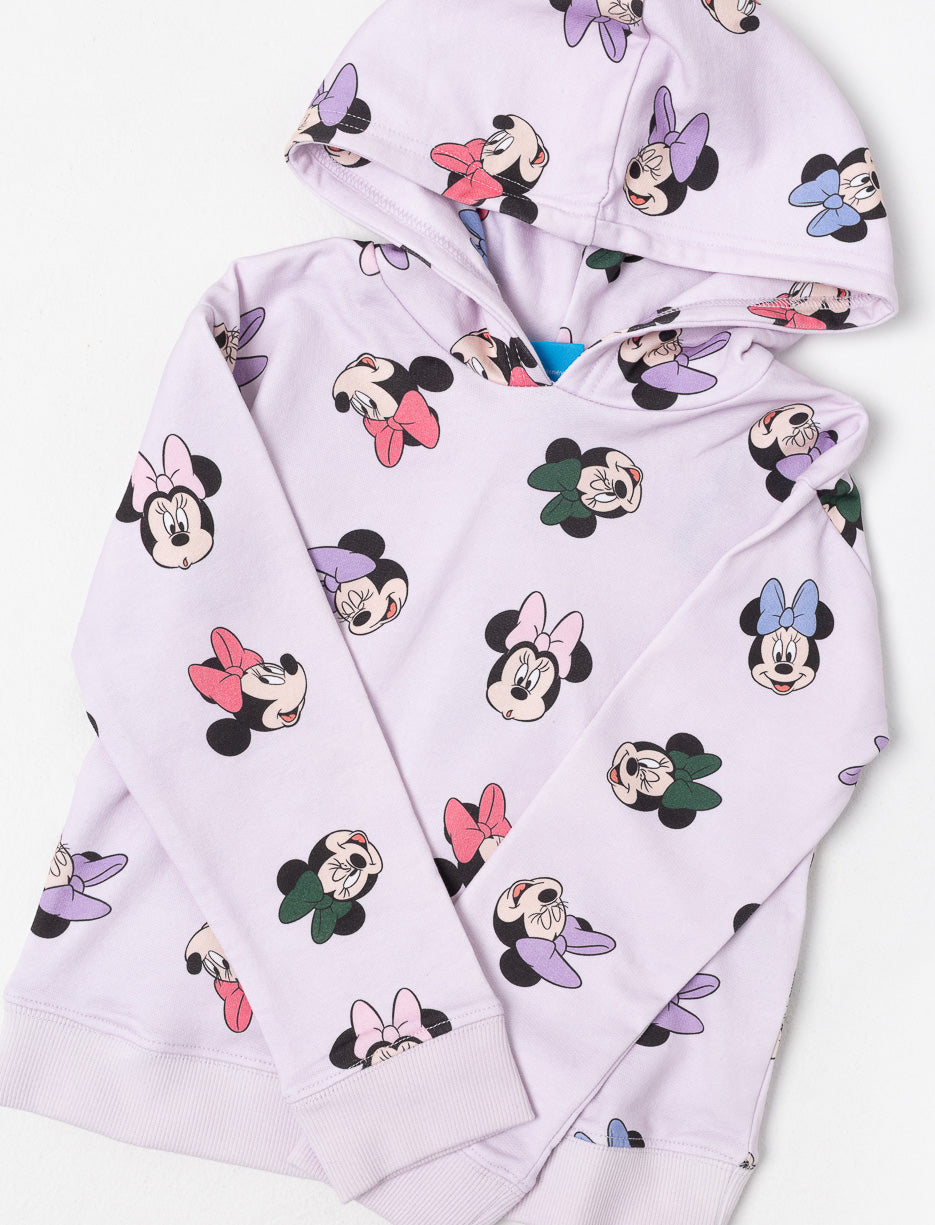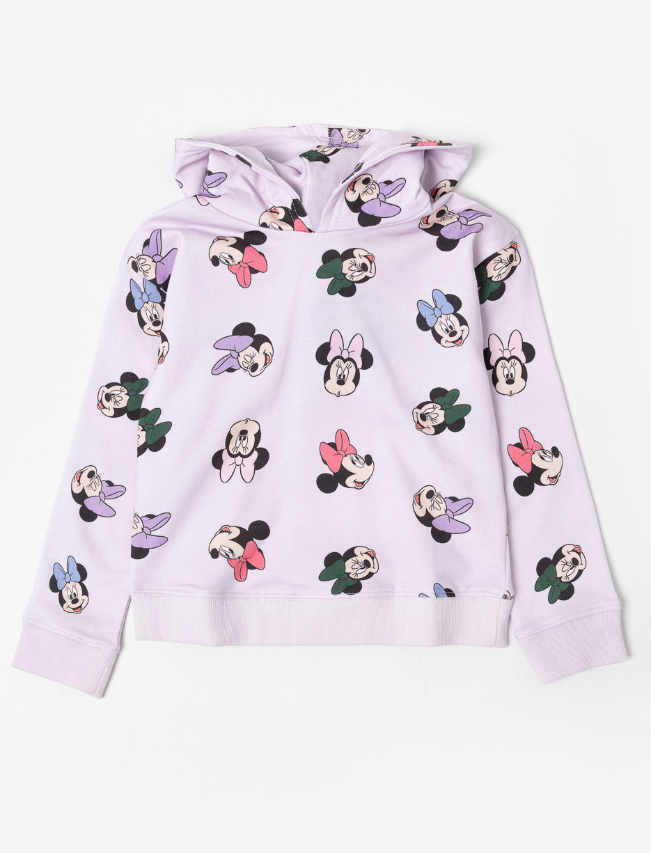 Give her comfort and style with this soft hoodie featuring a colorful Minnie print. Perfect to brighten her active days with a touch of Disney magic.